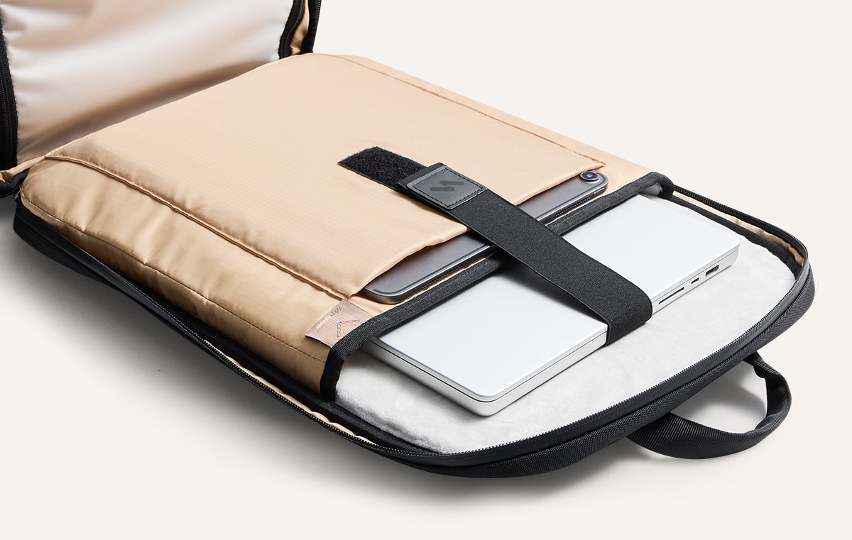 180°フルオープン設計でデバイスをごちゃごちゃ探すことなく素早く出し入れが可能。空港の保安検査もスムーズに通過。