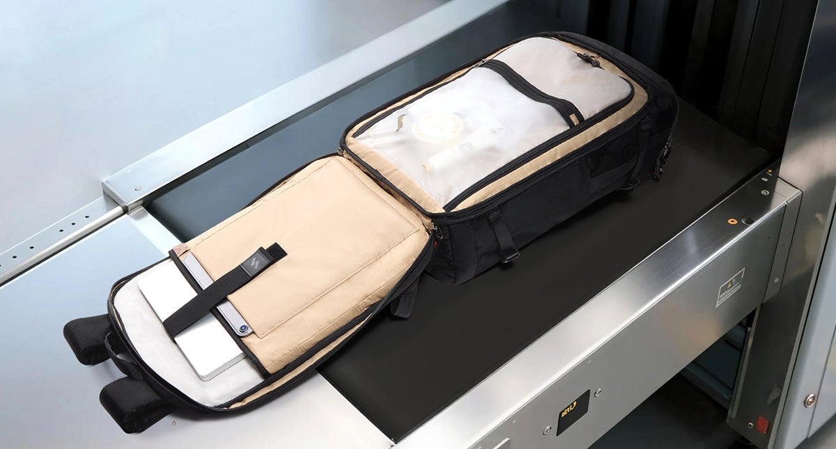 180°フルオープンで、ノートPCをバッグから取り出さずに保安検査をスムーズに通過できます。