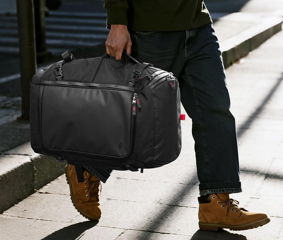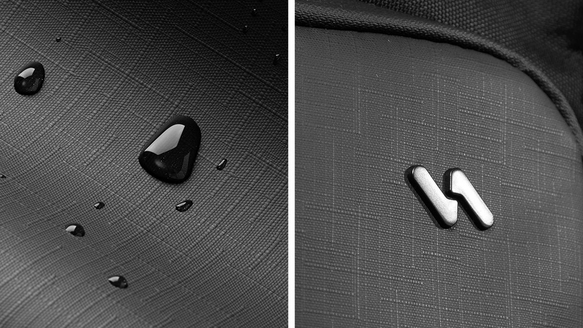 1200D高密度リサイクルポリエステルを採用。耐磨耗性と撥水性に優れ、環境に配慮しながらもお手入れ簡単。耐久性とサステナビリティを両立しました。