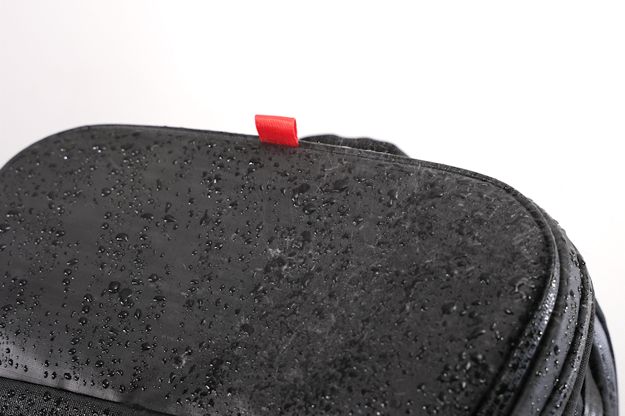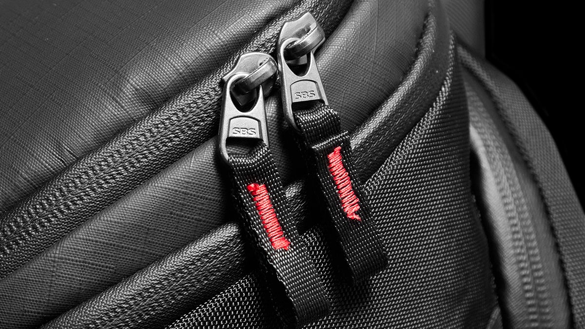 防水区画にはSBS防水ジッパー、その他のポケットにはYKKジッパーを採用。どちらもプロ仕様の信頼できるブランドで、耐久性と使いやすさを保証します。外部ジッパーには黒と赤のツートンカラーのプルタブ付きで、視認性と操作性に優れています。