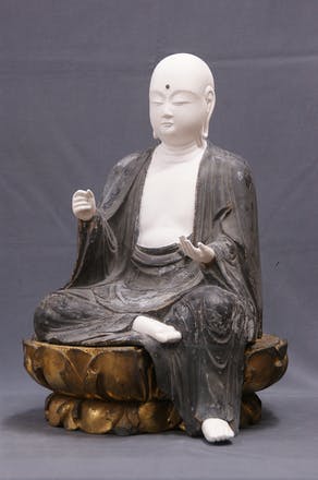 (眉、瞳、唇を描き、金泥の表面の艶を上げた面部)