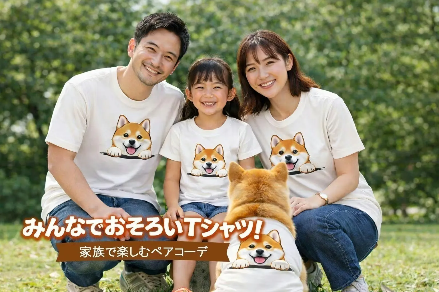 ワンちゃんにはお揃いデザインの半袖Tシャツをセットでお届けします
