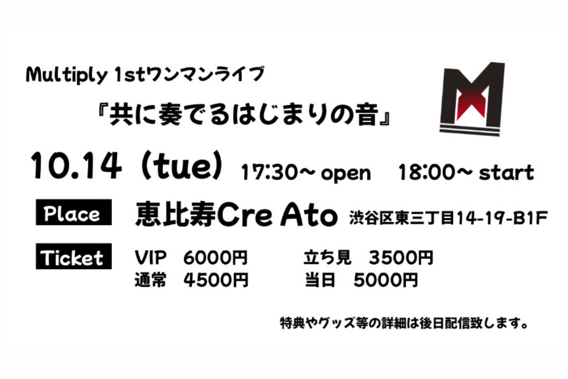- 10/14ライブ開催(恵比寿Cre Atoにて。キャパ120人)