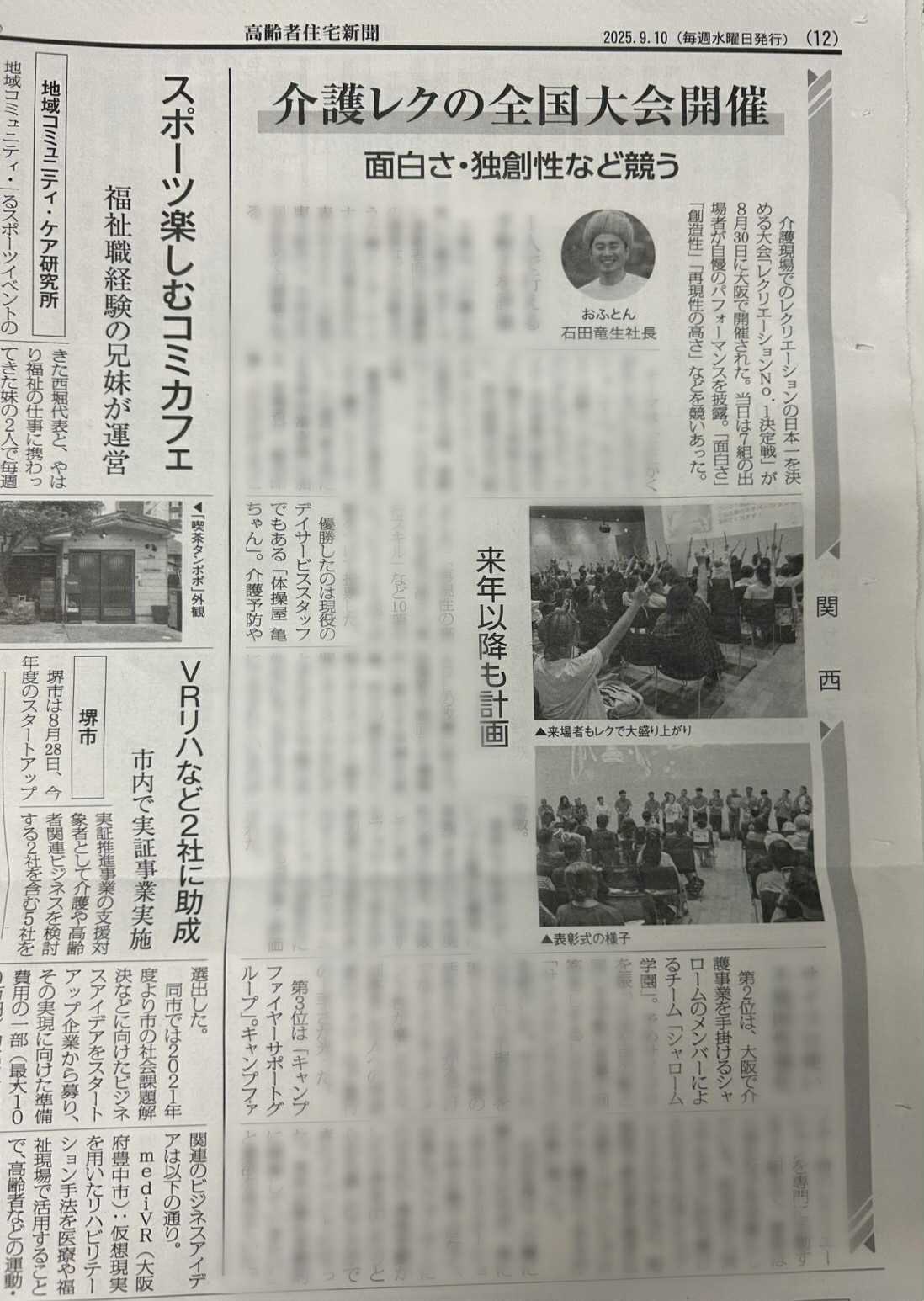 2025/09/14 09:18レクリエーションNo.1決定戦を取材していただき新聞記事になりました。ウェブ版はこちらです↓https://www.koureisha-jutaku.com/20250910_12_01/#202591491634当日の大会の興奮が記事から伝わってきます!この度はご支援と応援していただきありがとうございます。クラウドファンディングのリターンは現在準備中です。準備が完了次第、随時発送などを行っていきます。来年も必ず開催します!引き続き応援よろしくお願いします。 もっと見る