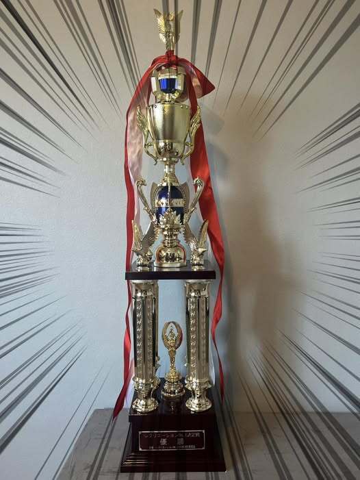 ついに完成しました‼\レクリエーションNo.1決定戦専用トロフィー/見てください、この存在感…!全国から集まるレクの猛者たちにふさわしい、世界に一つだけの優勝トロフィーです。現場で“すぐ使える”実力勝負!果たしてこの栄光を手にするのは、どのチームか⁉
