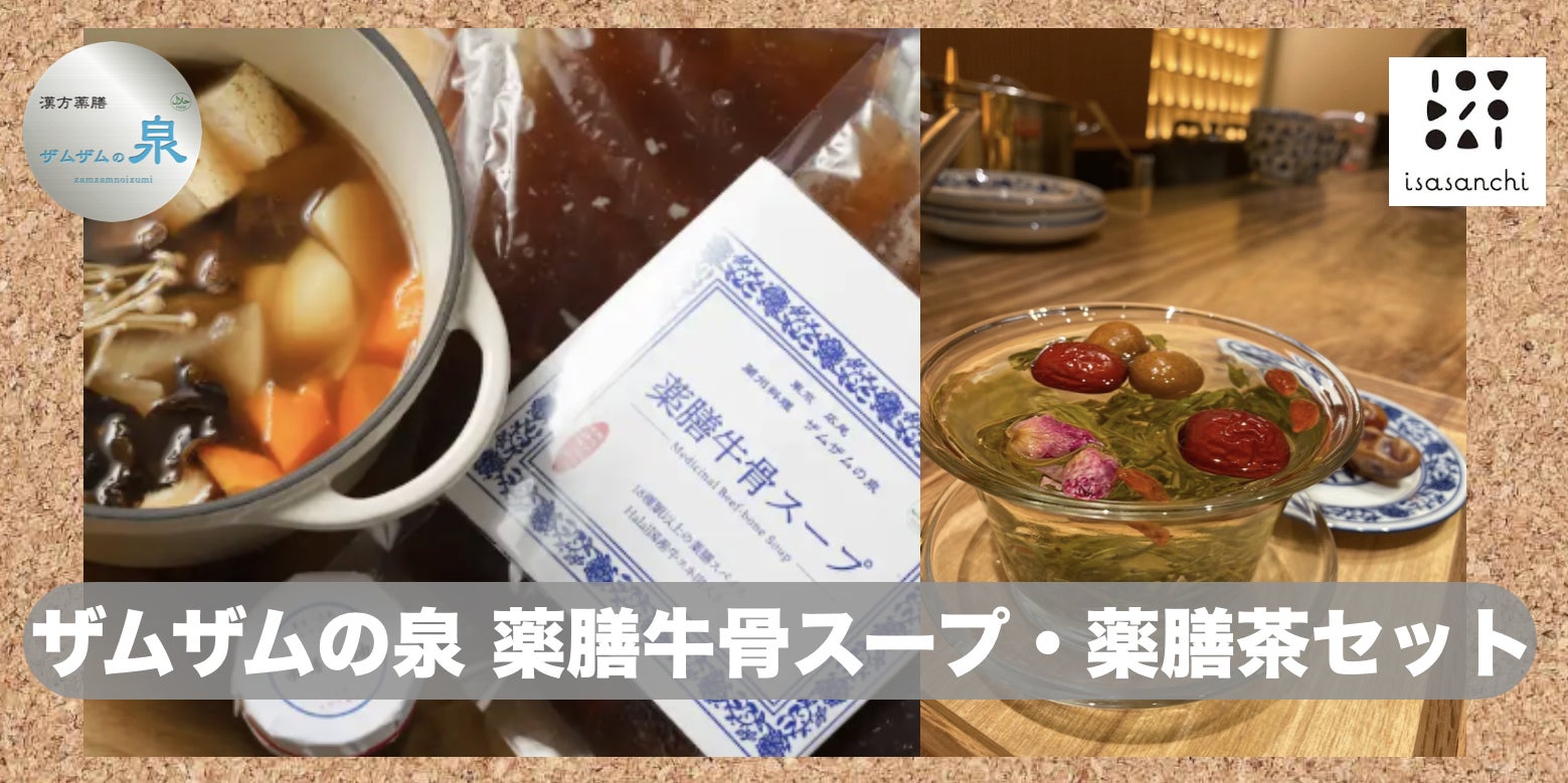 漢方薬膳ザムザムの泉の牛骨スープ、薬膳茶セット