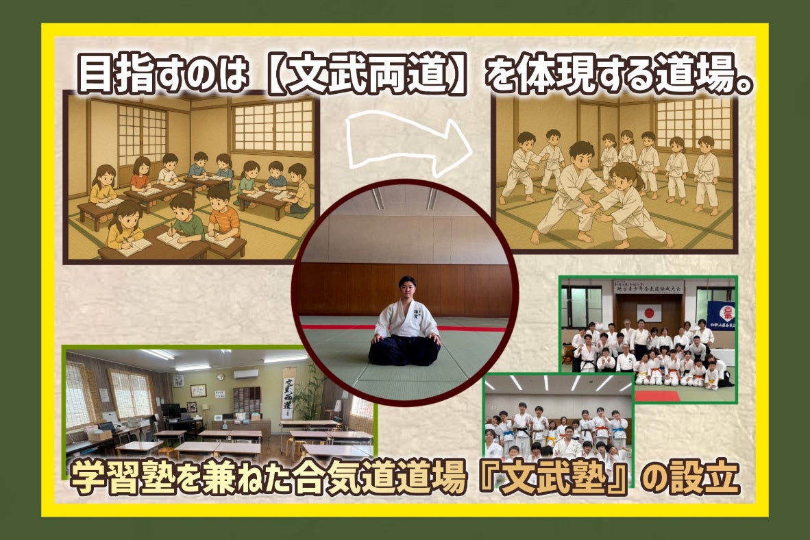 1969年から50年以上続く歴史ある竹豊館道場を、さらに次の世代に繋ぐためには、現状の体育館をお借りしている状況では年間契約などもできないため安定して続けることが困難です。『文武塾』を設立することでその問題を解決し、さらにこれまで合気道に関心がなかった和歌山の子ども達にも塾を通じて興味を持ってもらうことが狙いです。