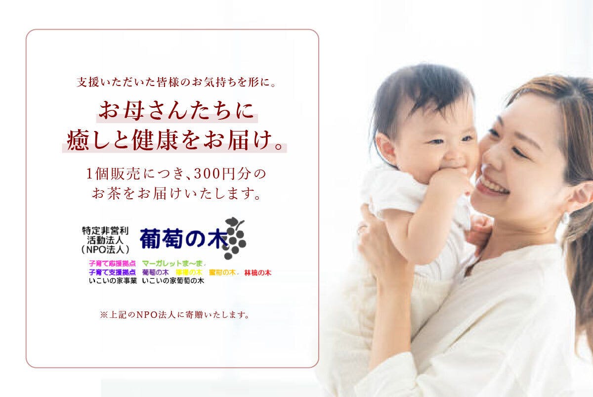 1個ご購入支援につき300円分のお茶を、特定非営利法人『葡萄の木』へ寄贈いたします。