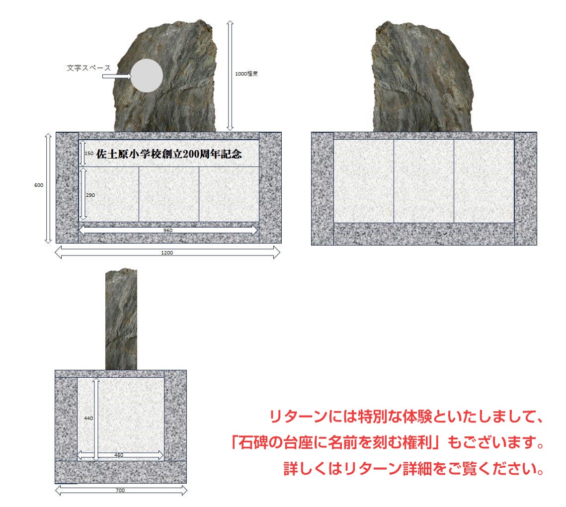 そのためにも、具体的には、2025年11月15日(土)に開催予定の佐土原小学校200周年記念式典をさらに盛り上げるべく、皆様のお力をお借りして、以下の①と②を実現したいです。
