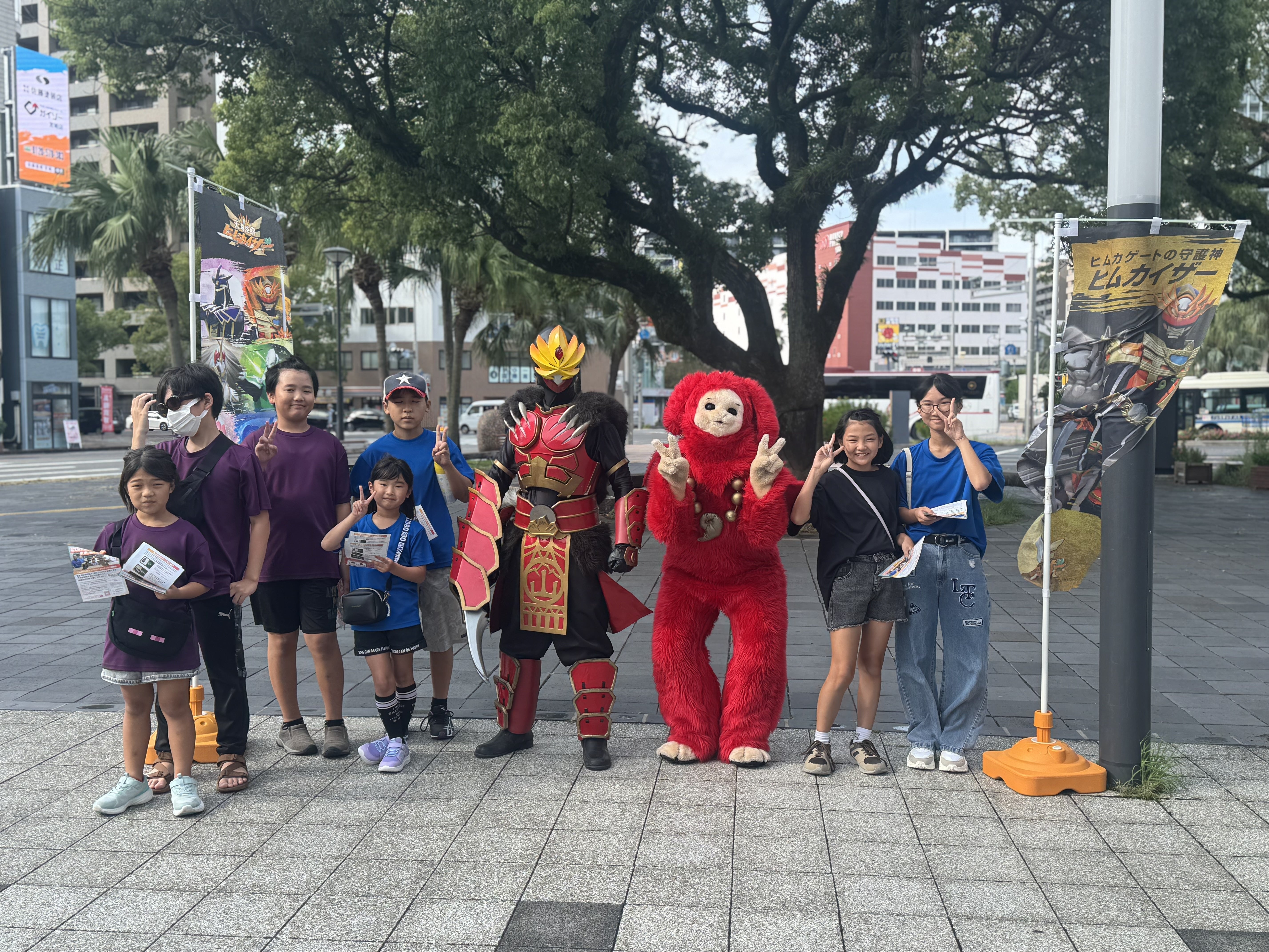 ヒムカイザーとは、宮﨑が誇るご当地ヒーロー。神話を語り継ぐという使命とともに、宮崎県内のみならず全国的に人気を博しています。まさに、歴史を語り継ぐためのこの式典にぴったりのヒーローです。
