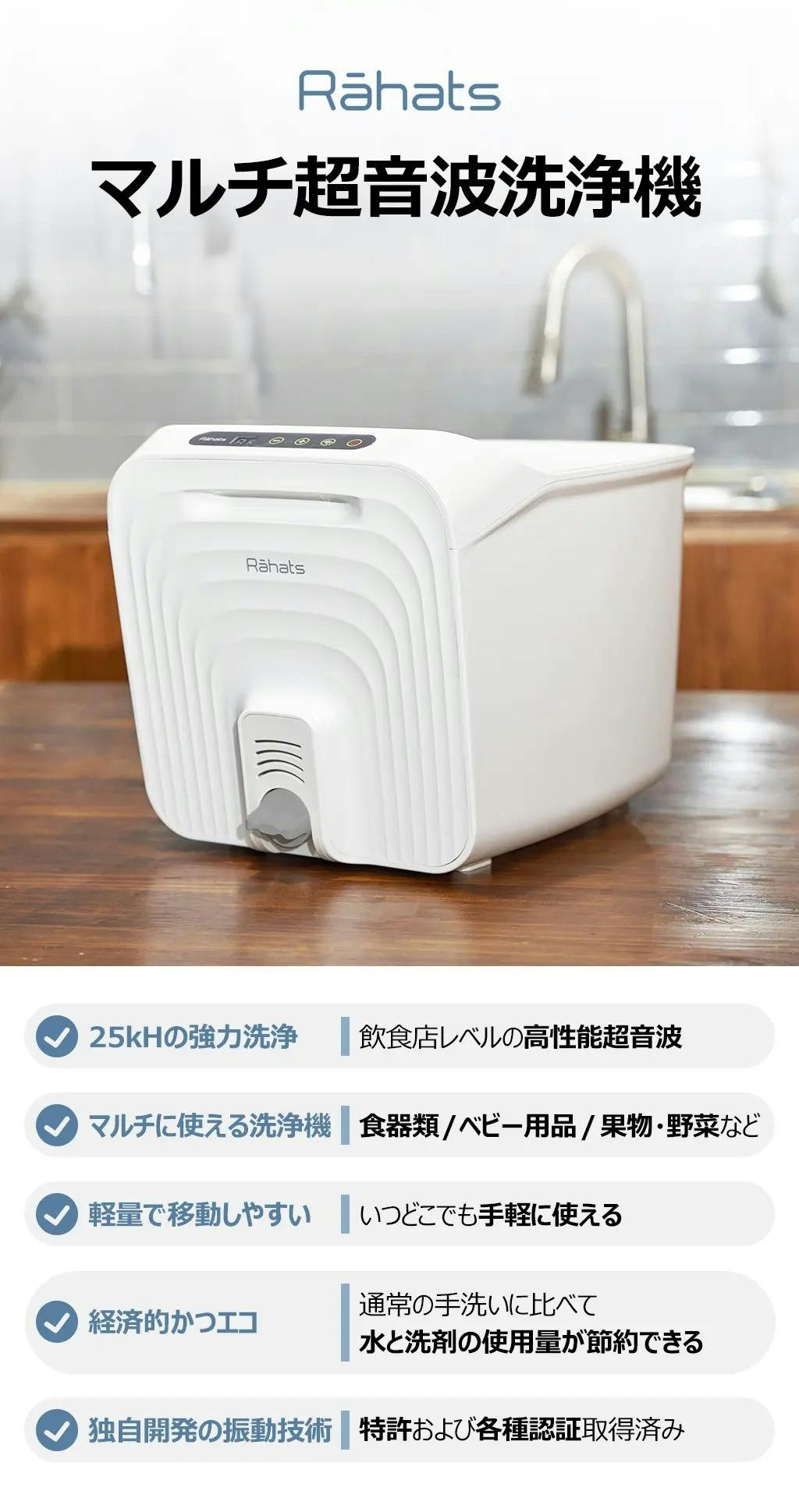 一見馴染みがないかもしれませんが、市場では眼鏡用のようなコンパクトな洗浄機は販売されており、野菜や果物用の洗浄機も一部販売されています。異なる点は、「Rahats マルチ超音波洗浄機」は、眼鏡などの小物や野菜・果物の洗浄を超え、簡単な食器洗いまで可能な革新的なアイテムという点です。1人暮らしが増え、衛生に対する意識が高まる現代において、除菌洗浄や農薬除去まで可能な製品となっています。