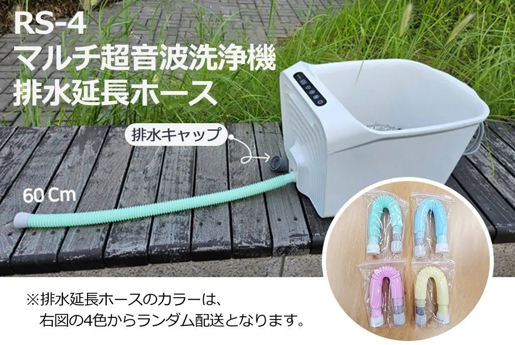 キャップを開いて簡単に排水可能!シンク台を上に置いて使用される場合は、洗浄機の向きに関係なく、排水延長ホースを使ってラクに排水ができます。