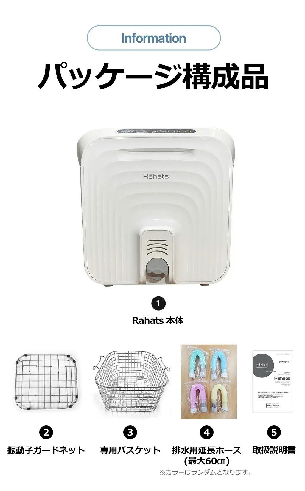 「Rahats」は、超音波洗浄機のメイン技術である振動子を独自で開発し、特許にも登録(韓国)されています。使用中の騒音も約50デシベル以下(静かなオフィス程度)です。