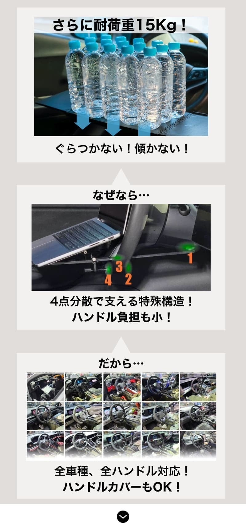 ✅ 耐荷重15kg&ハンドルを傷つけない仕組みを実現
