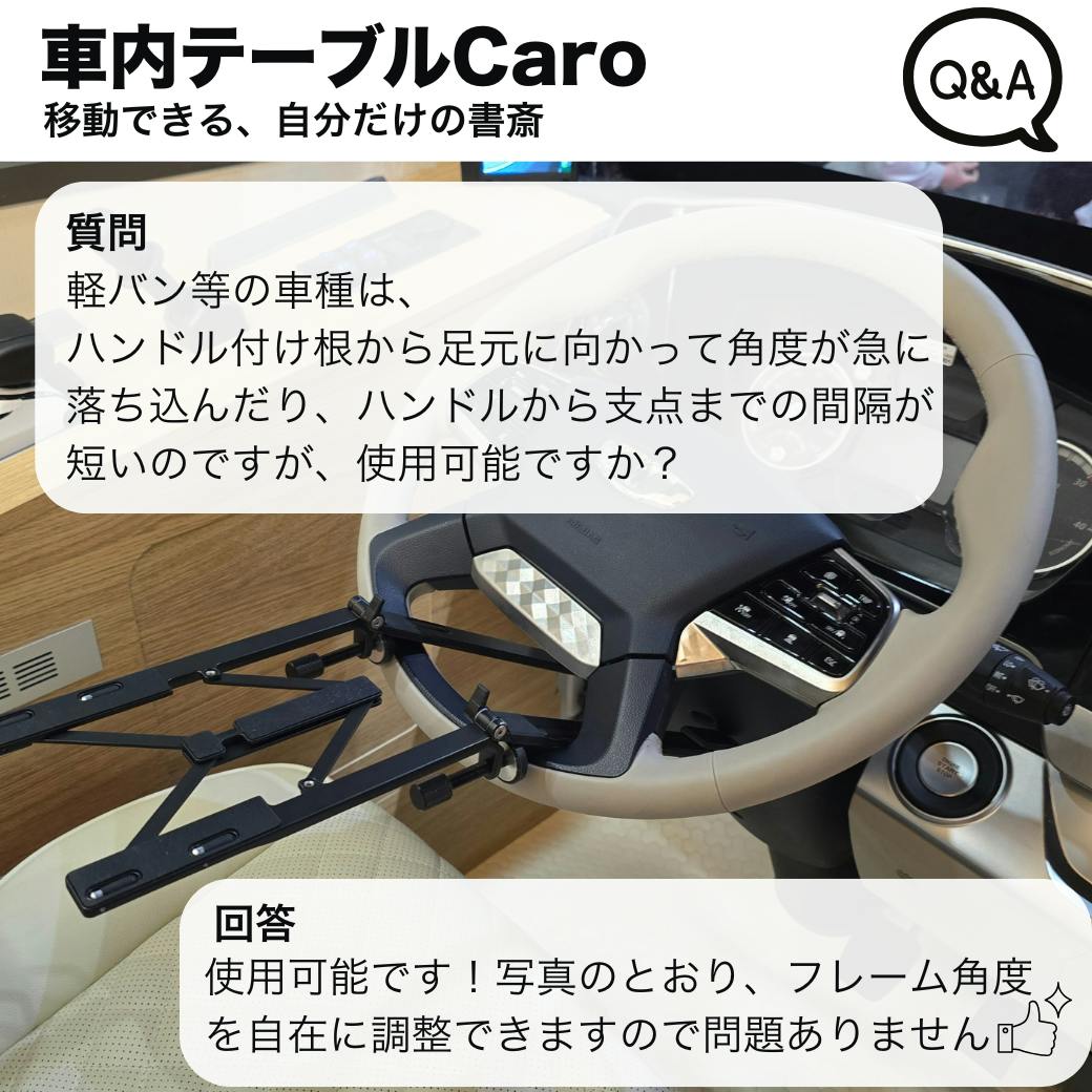 軽バン等の車種は、ハンドル付け根から足元に向かって角度が急に落ち込んだり、ハンドルから支点までの間隔が短いのですが、使用可能ですか?