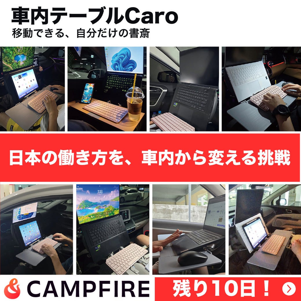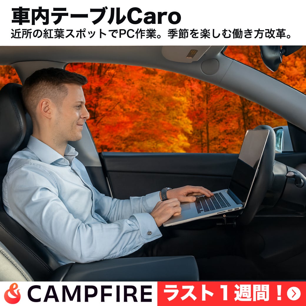\\秋分の日特別配信|Caro販売あと1週間&限定リターン追加!//近所の紅葉スポットでPC作業──秋風を感じながら、季節を楽しみつつ仕事もはかどる。Caro があれば、こんな未来がすぐ手に入ります!★駐車場があなた専用のオフィスに★自然を感じて集中&リフレッシュ★カフェ代も移動時間も節約でも、このタイミングを逃したら…Caroはもう手に入りません。そして、・散らかった自宅や・混雑したカフェ…作業場所を探し続ける日々が続きます。週1回のスタバ代、たった1年分でCaroが手に入るのに…そのチャンスを逃してしまうかもしれません。★☆!さらに朗報!☆★車中泊・着替え・昼寝にも使える「車用目隠しカーテンセット」付きリターンを数量限定で追加しました!プライバシーを確保し、Caroの使い勝手を一段と高める特別セットです。CAMPFIREでの販売は、あと1週間で終了です!早割・追加リターンとも残りわずか。お得なリターンが無くなる前にぜひ手に入れてください!↓↓ https://camp-fire.jp/projects/870958/view
