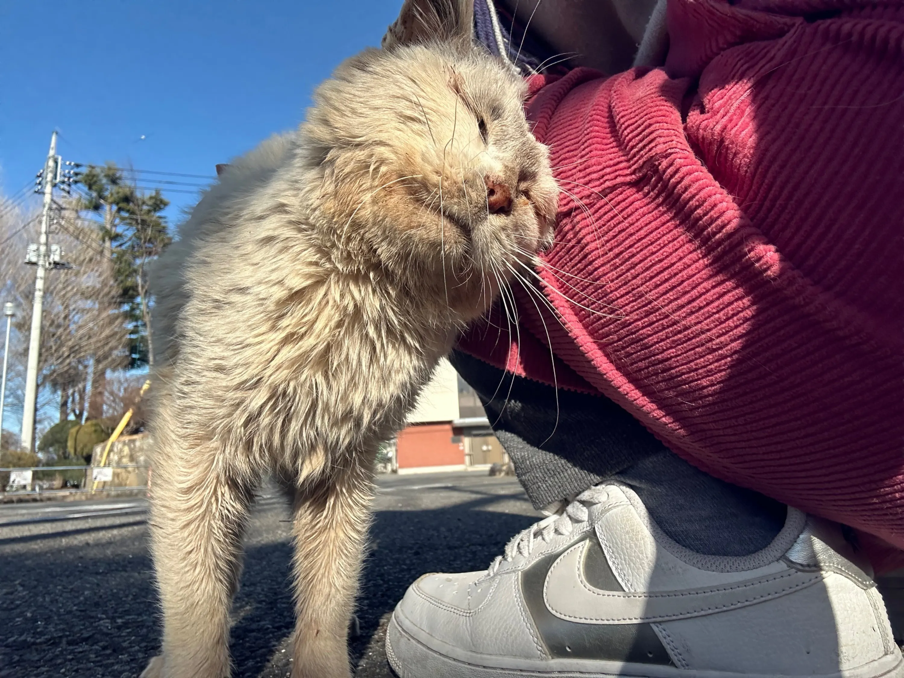 棒のようなもので叩こうとしてる人がいて、怒ったことがあると餌やりさんは言いました。事実、わたしの手に異様に目を閉じて怯える猫がいてそれもまた悲しくなりました。皆が優しい世界ではないからこそ、この子達が住む場所を変えないと、解決しないと思いました。