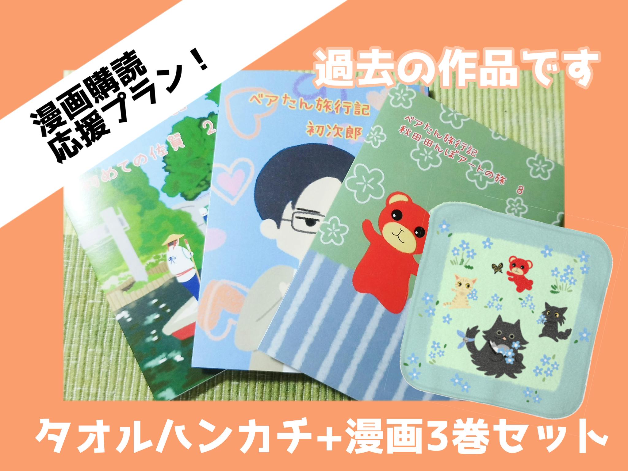 タオルハンカチ+漫画3巻(写真に載っている画像は過去の作品です。)