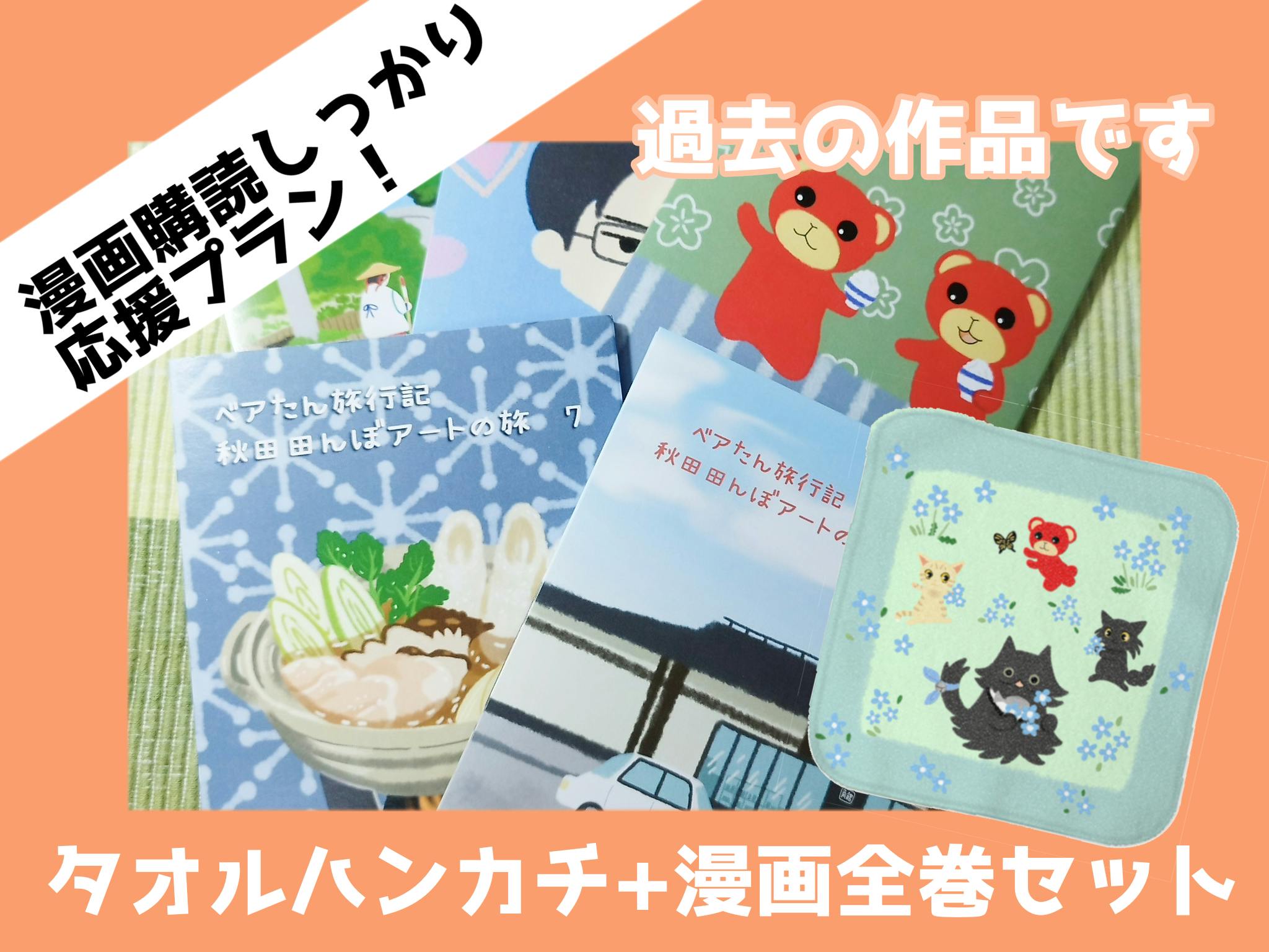 タオルハンカチ+漫画全巻(写真に載っている画像は過去の作品です。漫画は全巻で10巻を超える予定です)