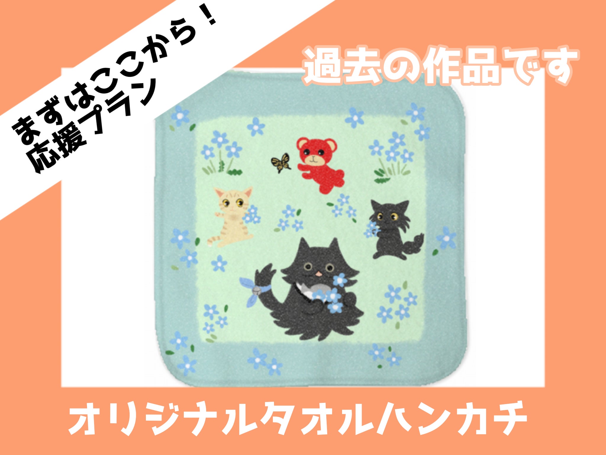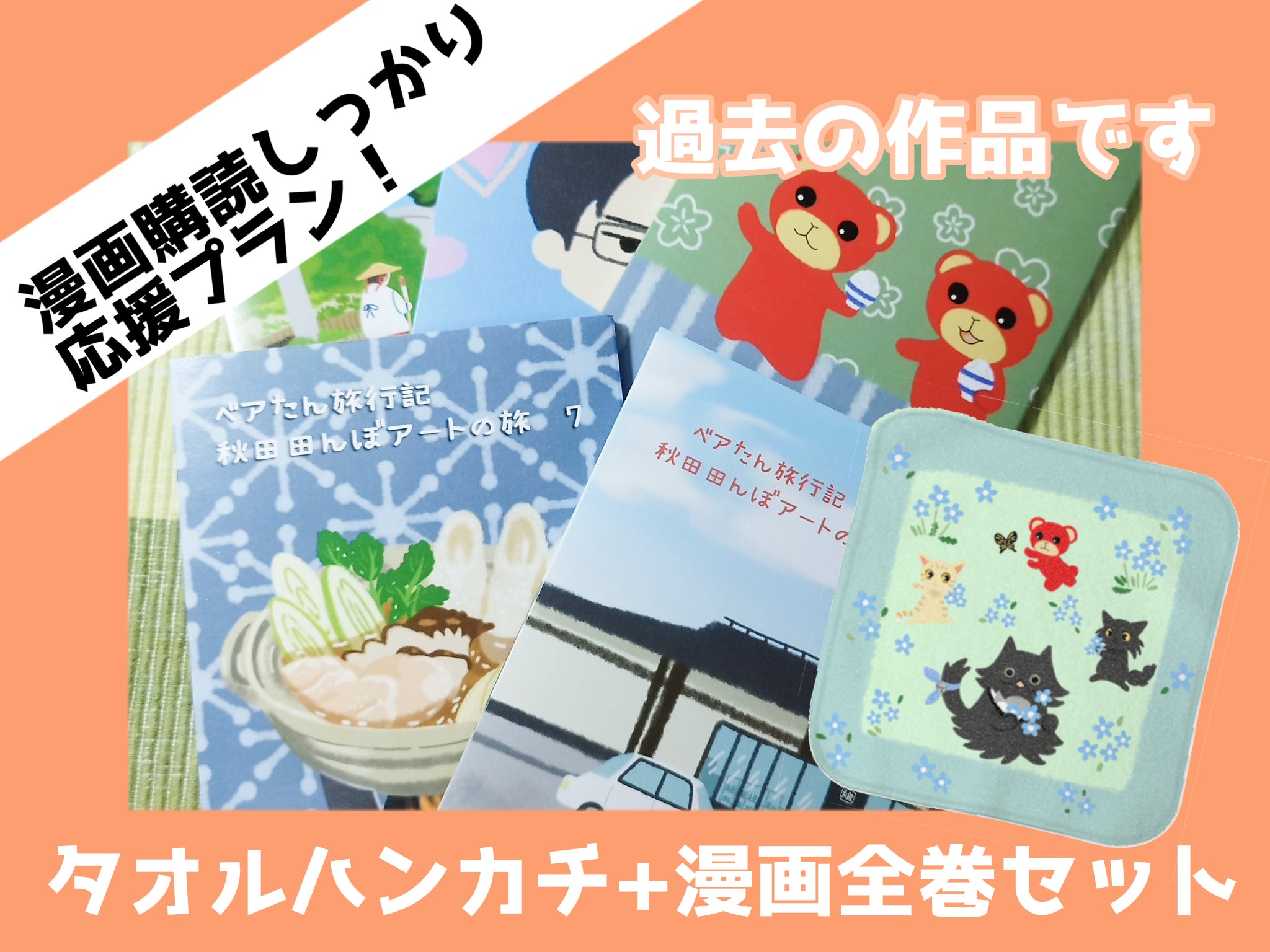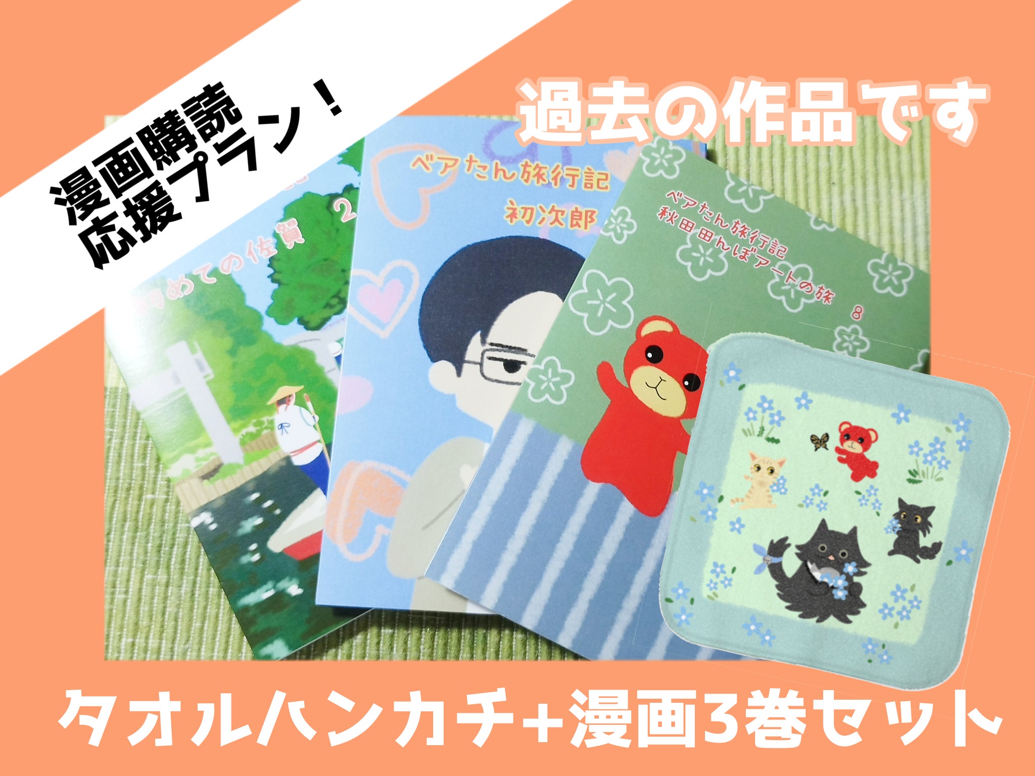 タオルハンカチ+漫画3巻(写真に載っている画像は過去の作品です。)