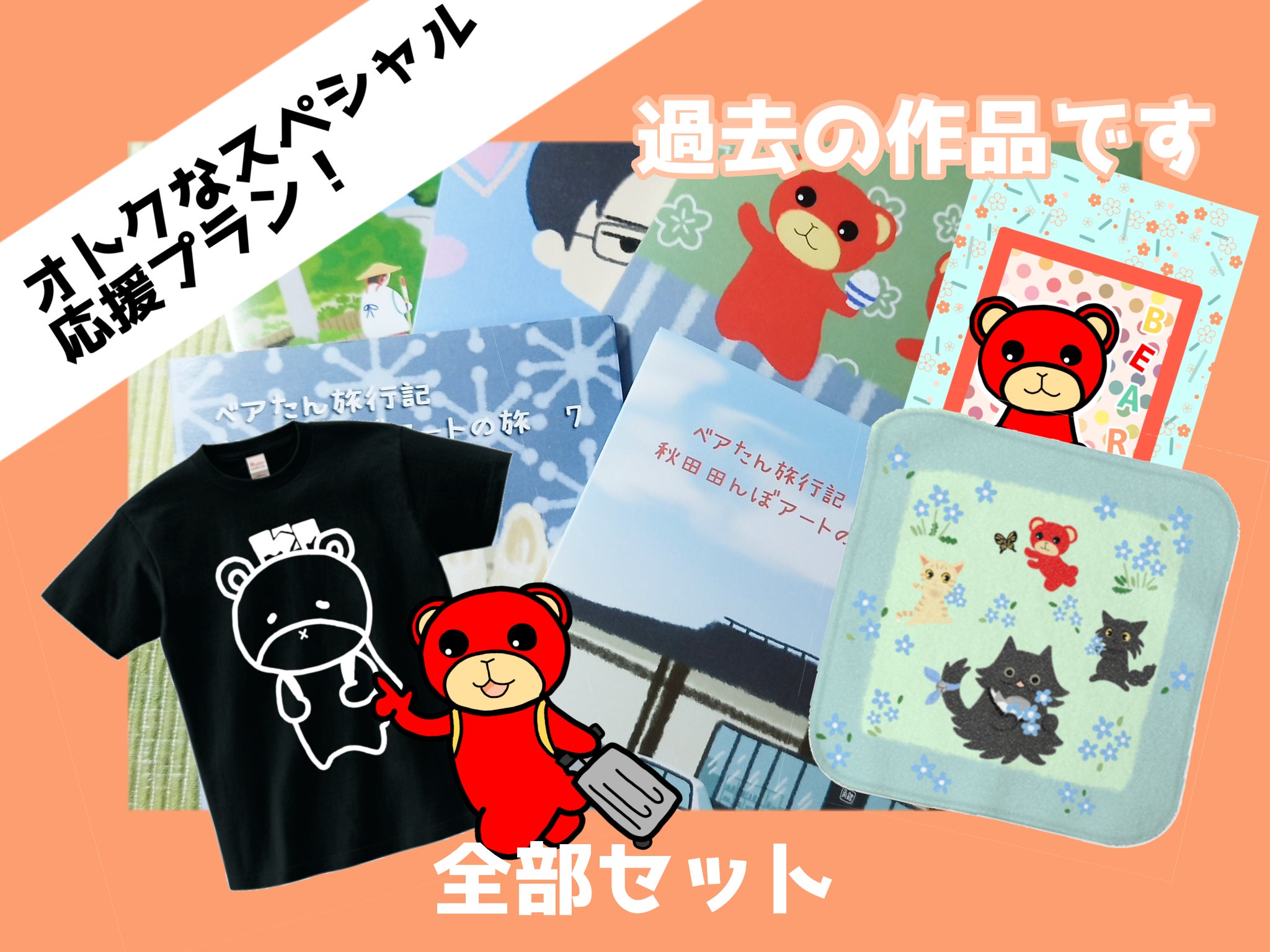 タオルハンカチ+漫画全巻(写真に載っている画像は過去の作品です。漫画は全巻で10巻を超える予定です)