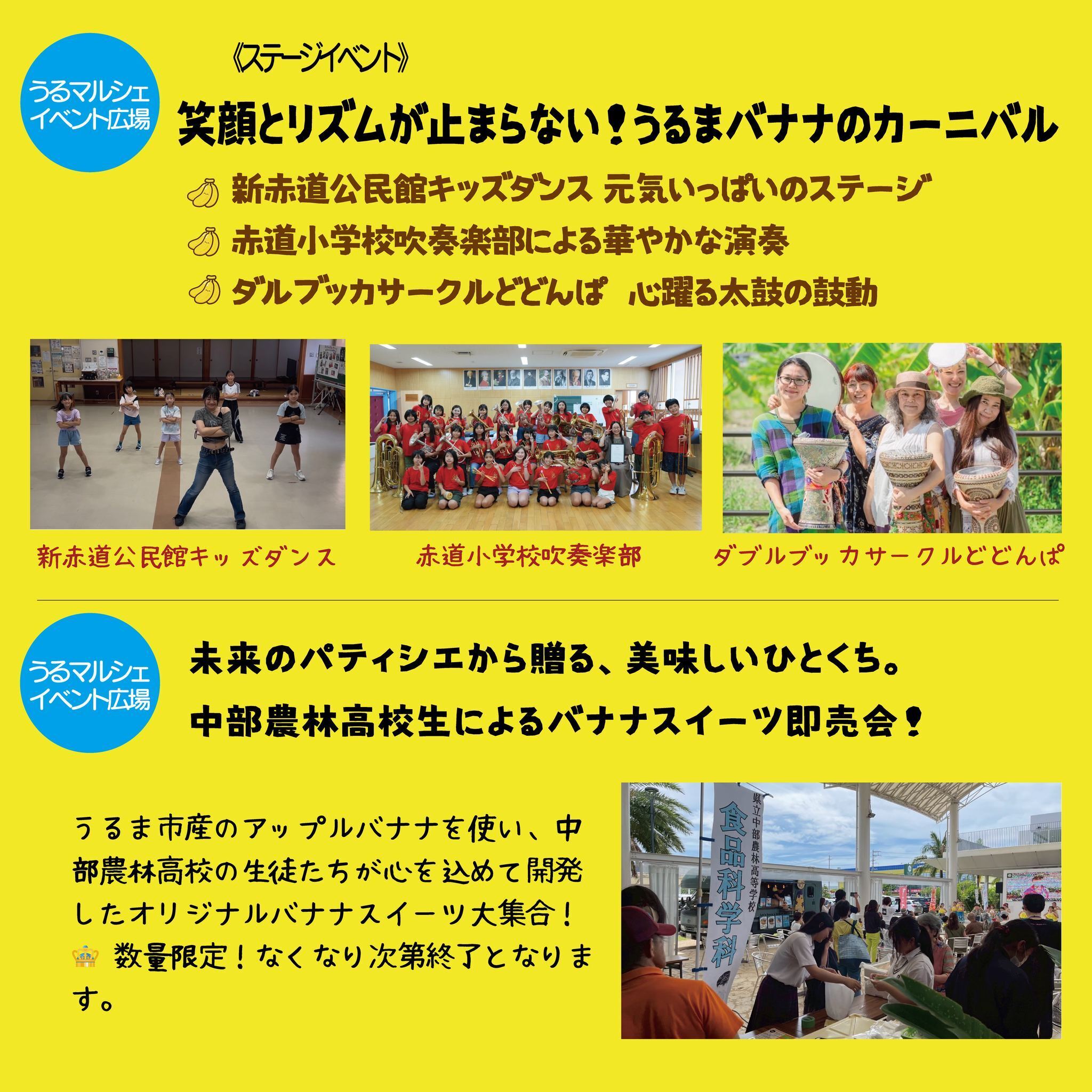 明日、うるマルシェさんにて行われる「バナナ王国うるまのバナナフェスティバル」で演奏します。