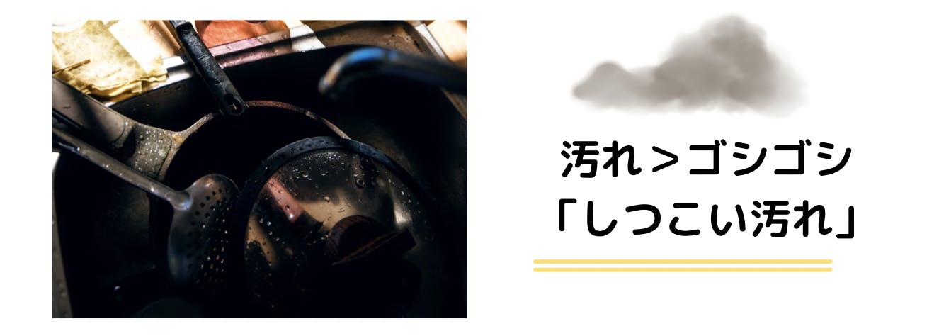 → 通常の汚れに対応。シンクや鍋、調理器具など幅広い用途で使いやすい。