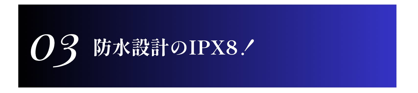 「IPX8」は国際規格に基づいた防水性能の等級で、「継続的に水中に沈めても使用に支障がないレベルの防水性」を意味します。
