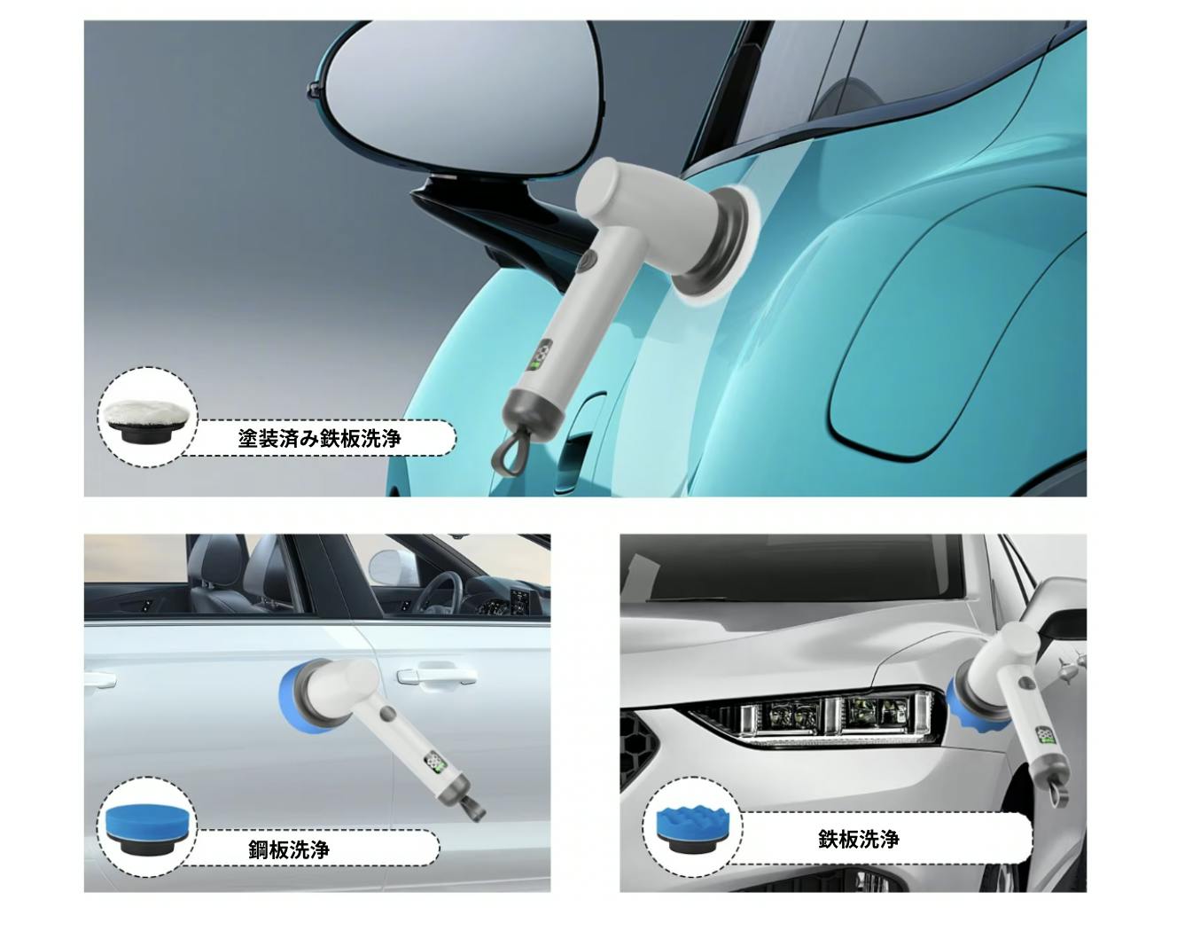 → 車体の中でも比較的硬めの素材や、ドアまわりなどに使用。