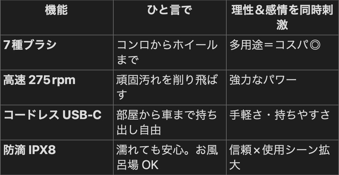 → 一度充電すれば、キッチン・浴室・玄関など電源のない場所でも使用可能。