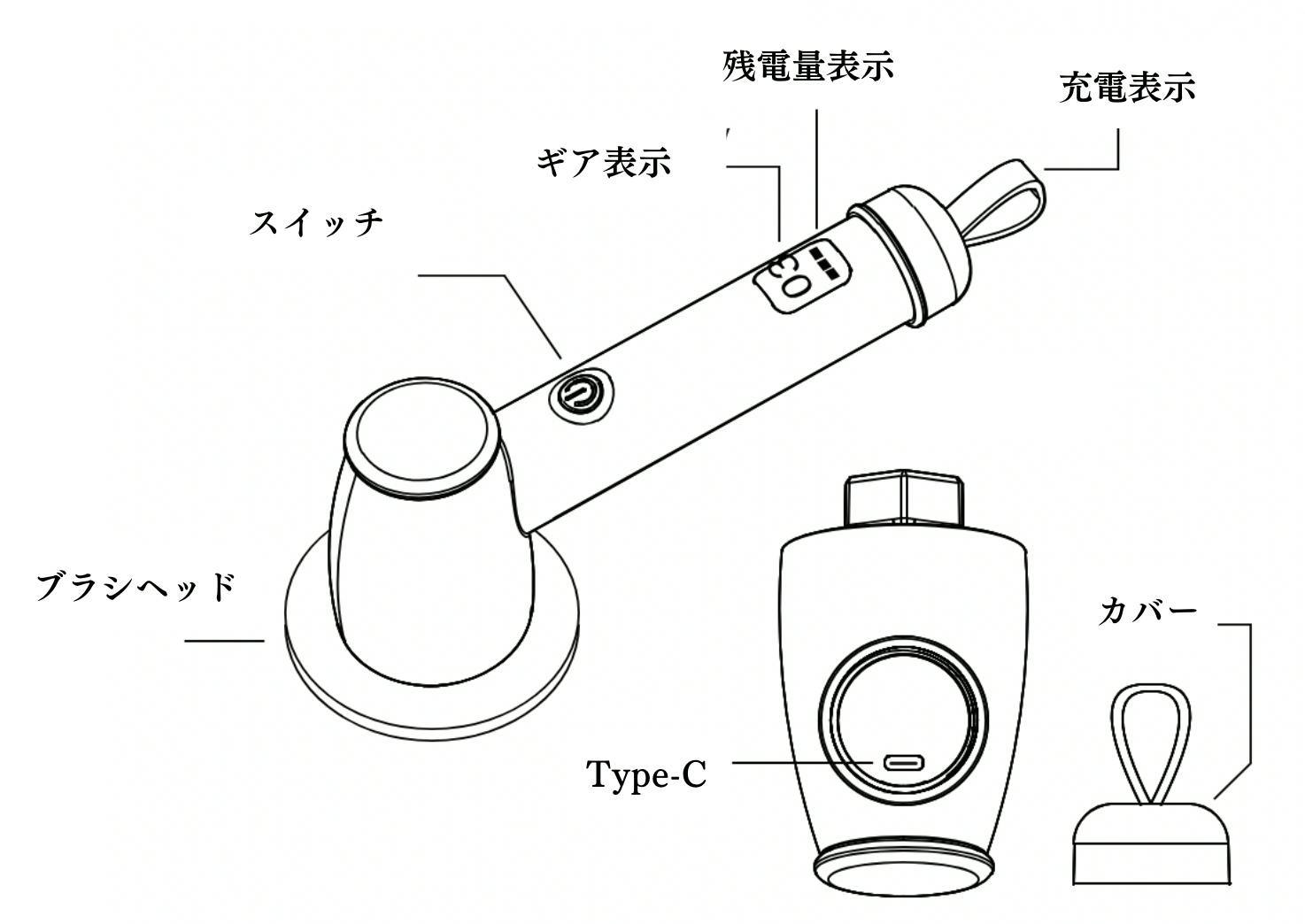 電源マーク(スイッチ)のボタンを短押しすると、ギア(スピードや強さの段階)を切り替えられます。自動電源オフ機能