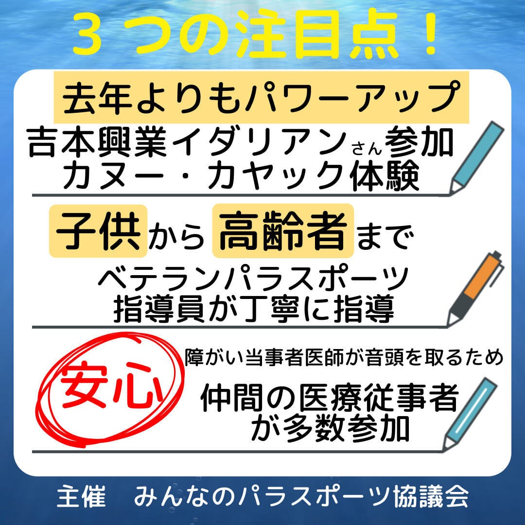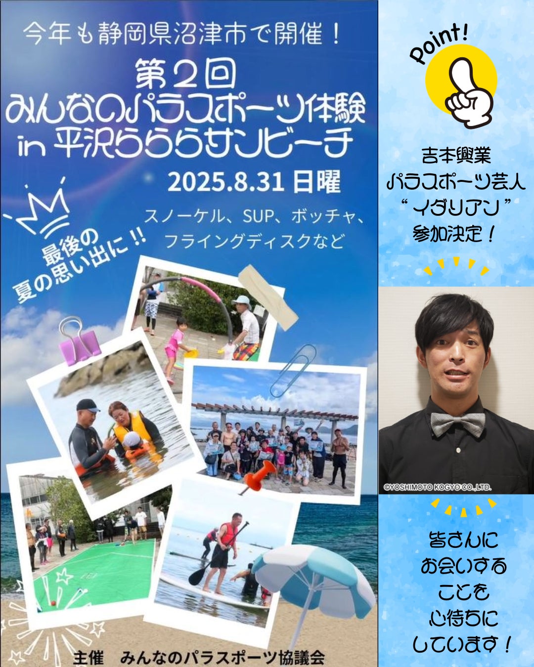 1)第2回みんなのパラスポーツ体験in平沢らららサンビーチ 公式Facebook(実施要項もこちらから)