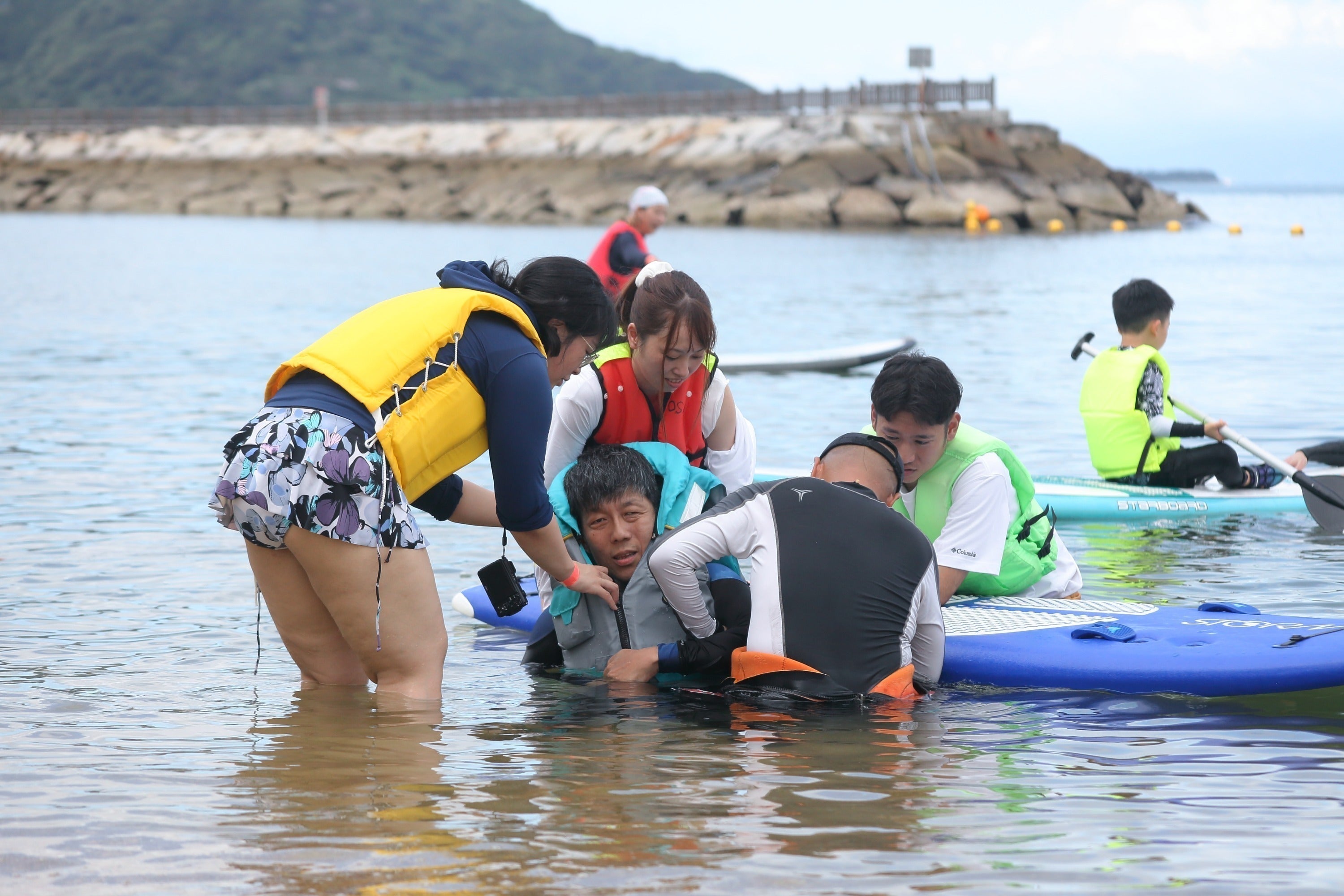 当日は、シュノーケルやSUP(サップ、Stand Up Paddleboard)といったハードルの低いマリンアクティビティに加えて、ビーチサイドではボッチャやフライディングディスクといったパラスポーツも体験できるイベントを行うこととなりました。