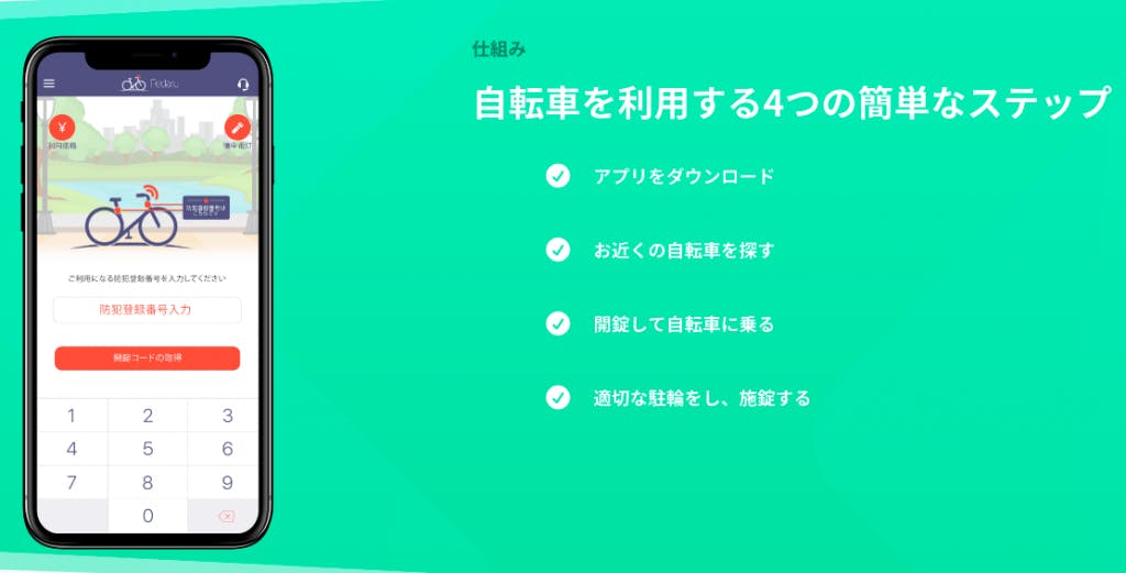 Pedaruのアプリをダウンロードし簡単な登録を済ませるとすぐに、プラットフォームに登録された近くにある自転車を検索し、使用することができます。決済はクレジットカードを使用した電子決済なので無駄な時間を使うこともなくスムーズにできます。また、使った自転車は法令等やサービスの利用規約に違反しない限り、基本的にはどこにでも駐輪可能ですので自分の生活にあったかたちで自転車を利用することが可能です。自転車を持っていなくても気軽に自転車を使用でき、自分の生活に合った乗り方で使えるので利用者にとっては非常に便利なシステムです。