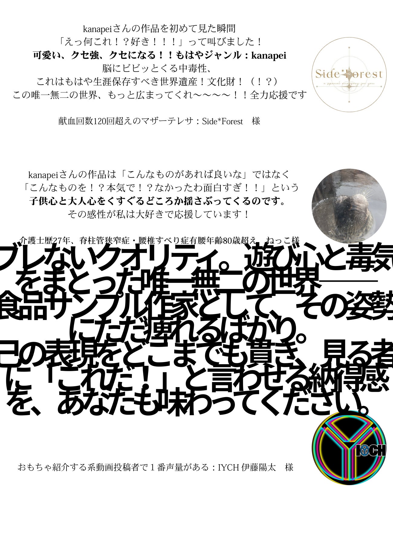 さて、今回のお願いは、食品サンプル雑貨作家kanapeiの、個人開催では最初で最後になるであろうスケールでお届けする初個展「雑飯展」開催にあたり、中途半端な物事はしたくない。来てくれる人全員がニヤニヤしてしまうような空間を作りたいと本気で考えたことから始まりました。