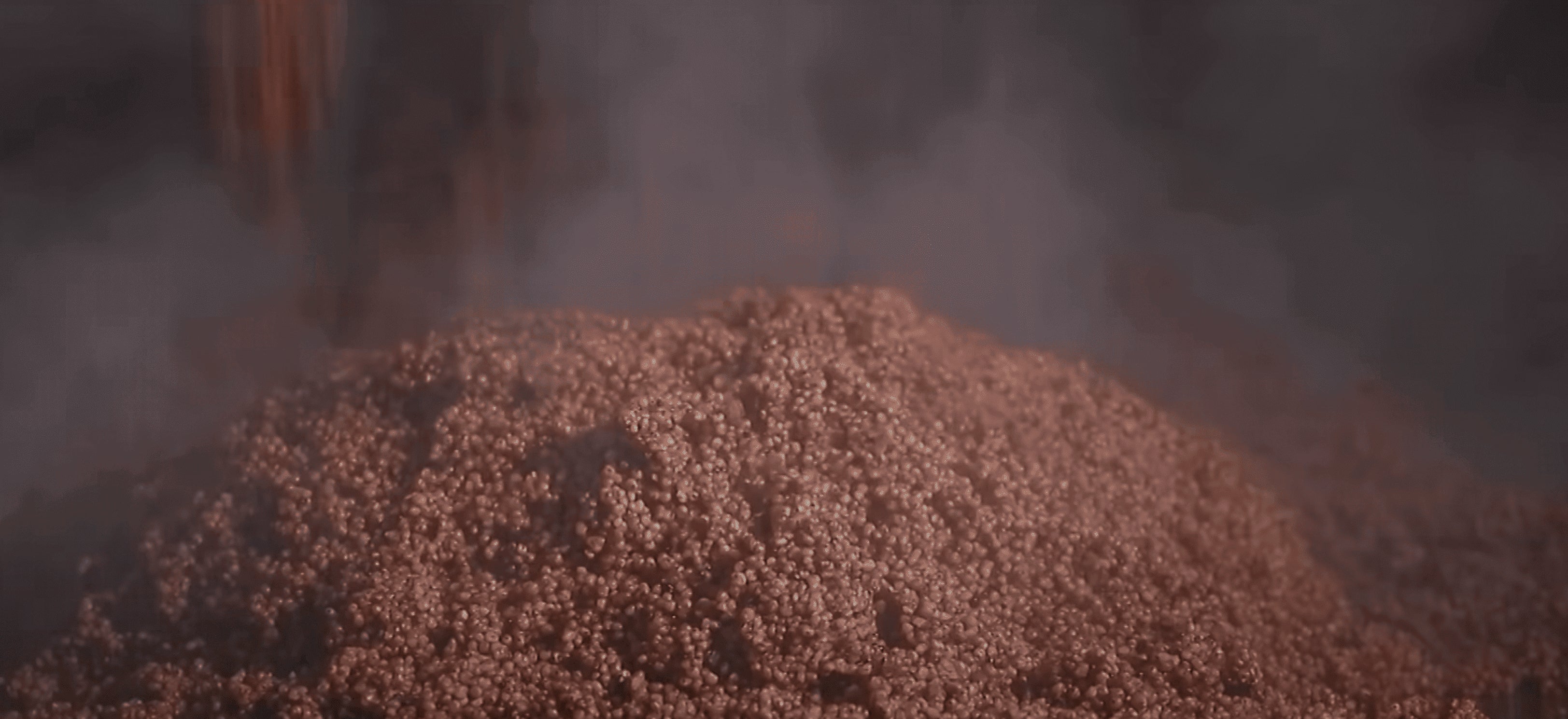 「舜堂」のベースとなる蒸留酒は、高粱(イネ科、モロコシ、またはソルガムとも呼ぶ)を原料とし、現在はオーストラリアから輸入しています。この高粱を固体酵母とともに固体のまま発酵させ、そのまま単式蒸留器で蒸留します。