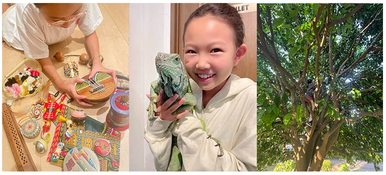 集めている宝物 大好きな爬虫類(家ではレオパと亀を飼っています) 近所で木登り中