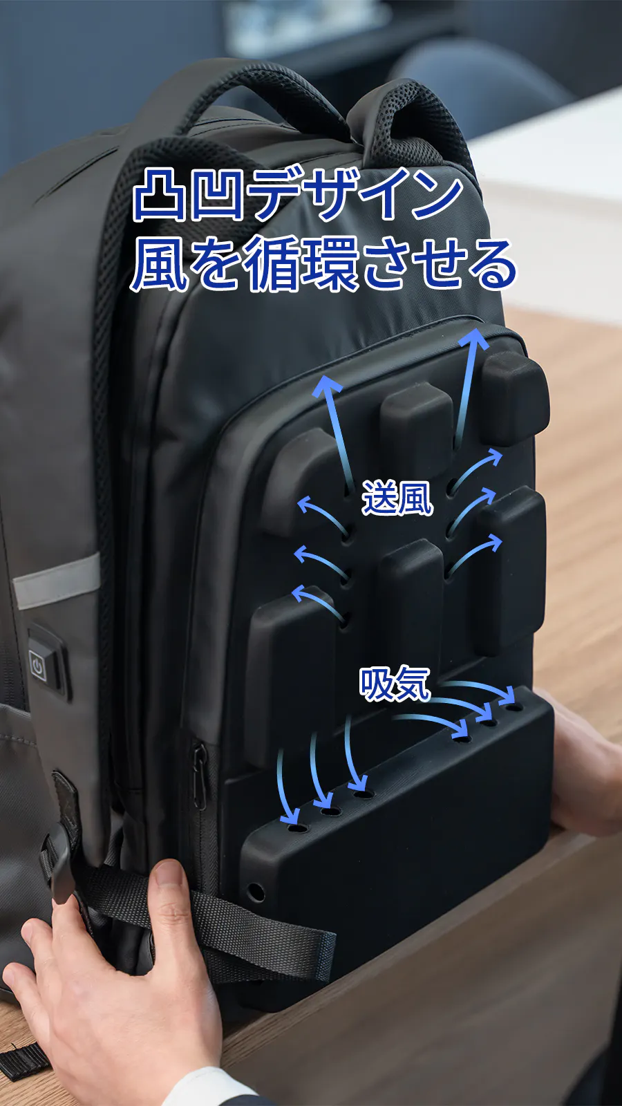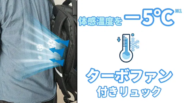 リュック背中面にターボファンが搭載!