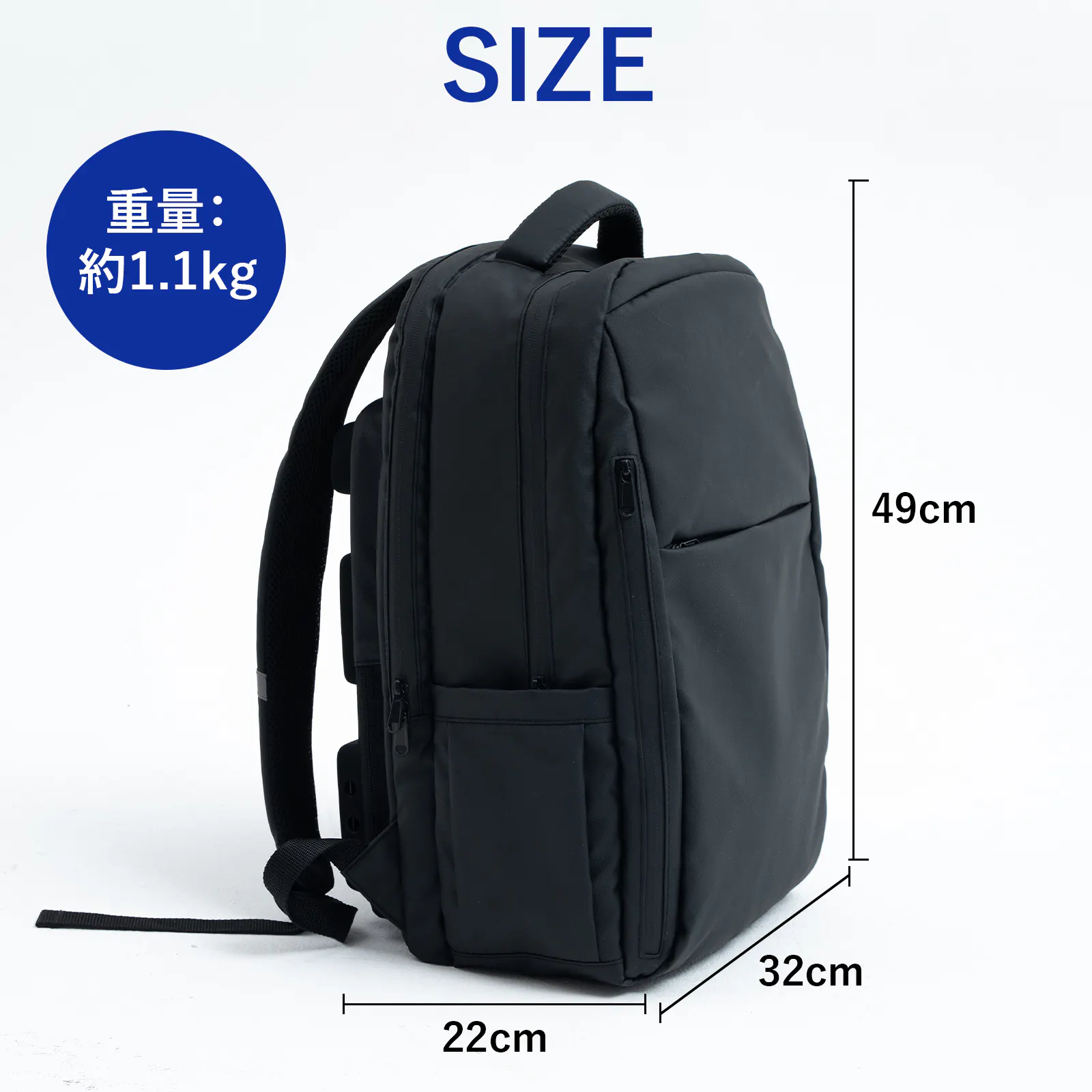 クールリュック全体の重量は約1.1kg、通常リュックと同じレベルです。