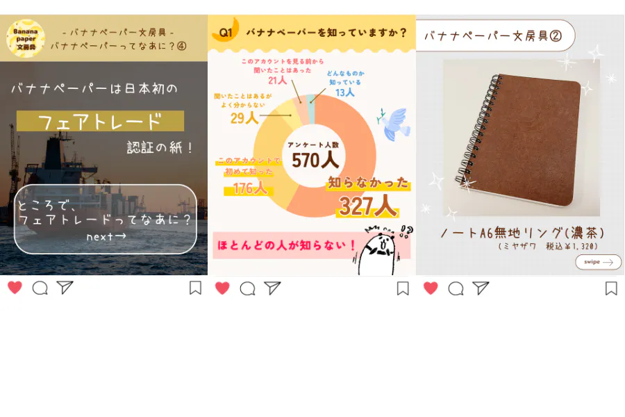 Instagramでは、バナナペーパーについてや商品紹介をしています♪