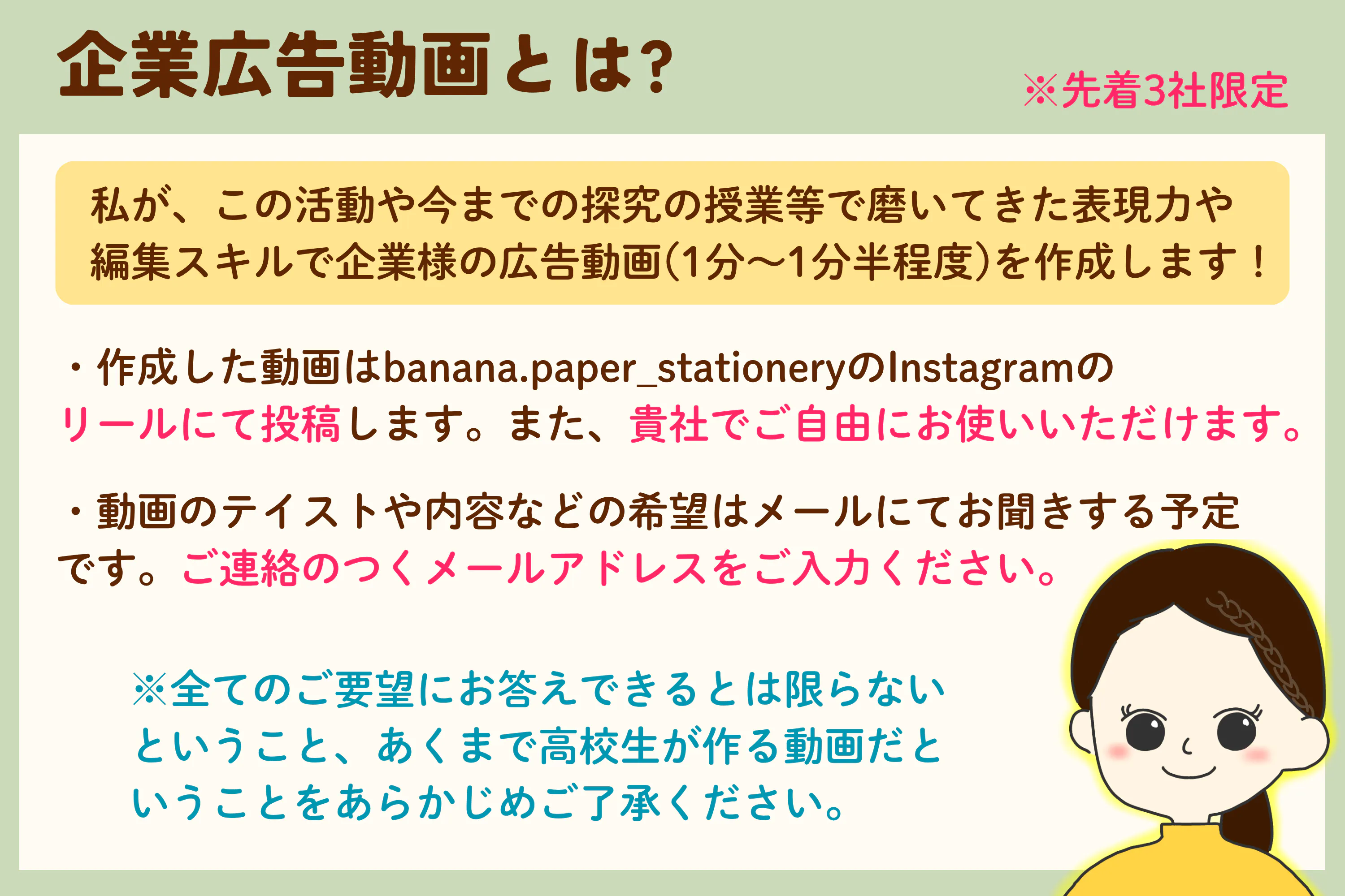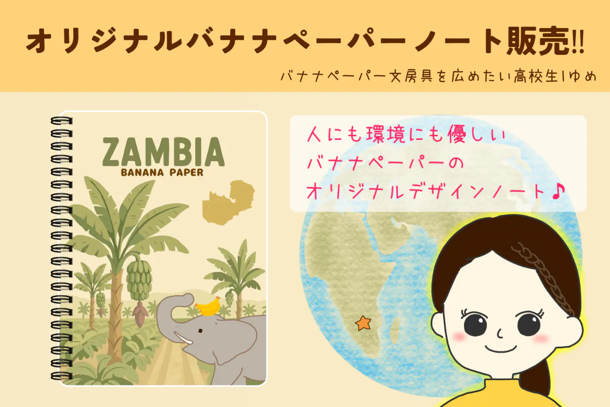 こんにちは!バナナペーパー文房具を広めたい高校生、ゆめです♪