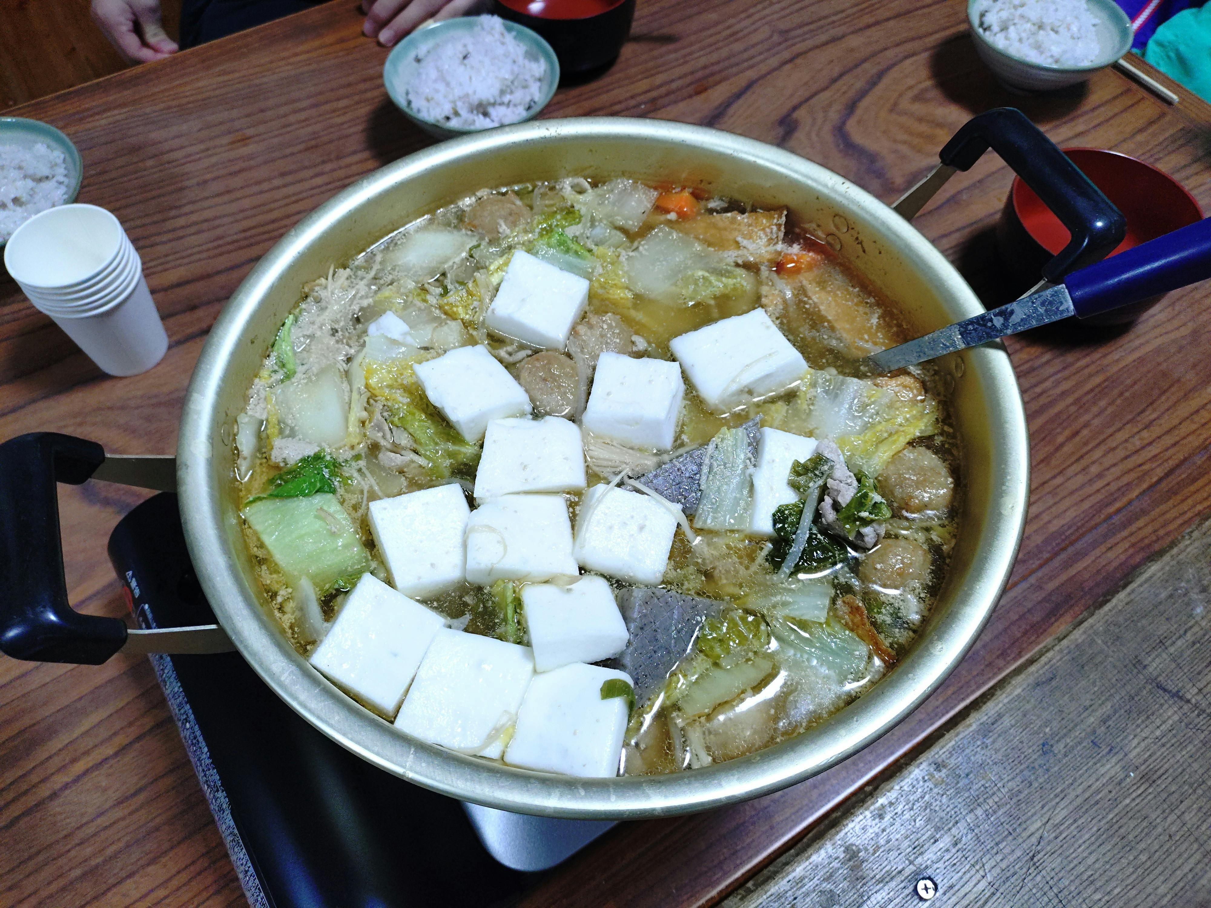 この時期の山のキャンプは冷え込むので新米のおかずは豚鍋と鳥鍋の2種類!