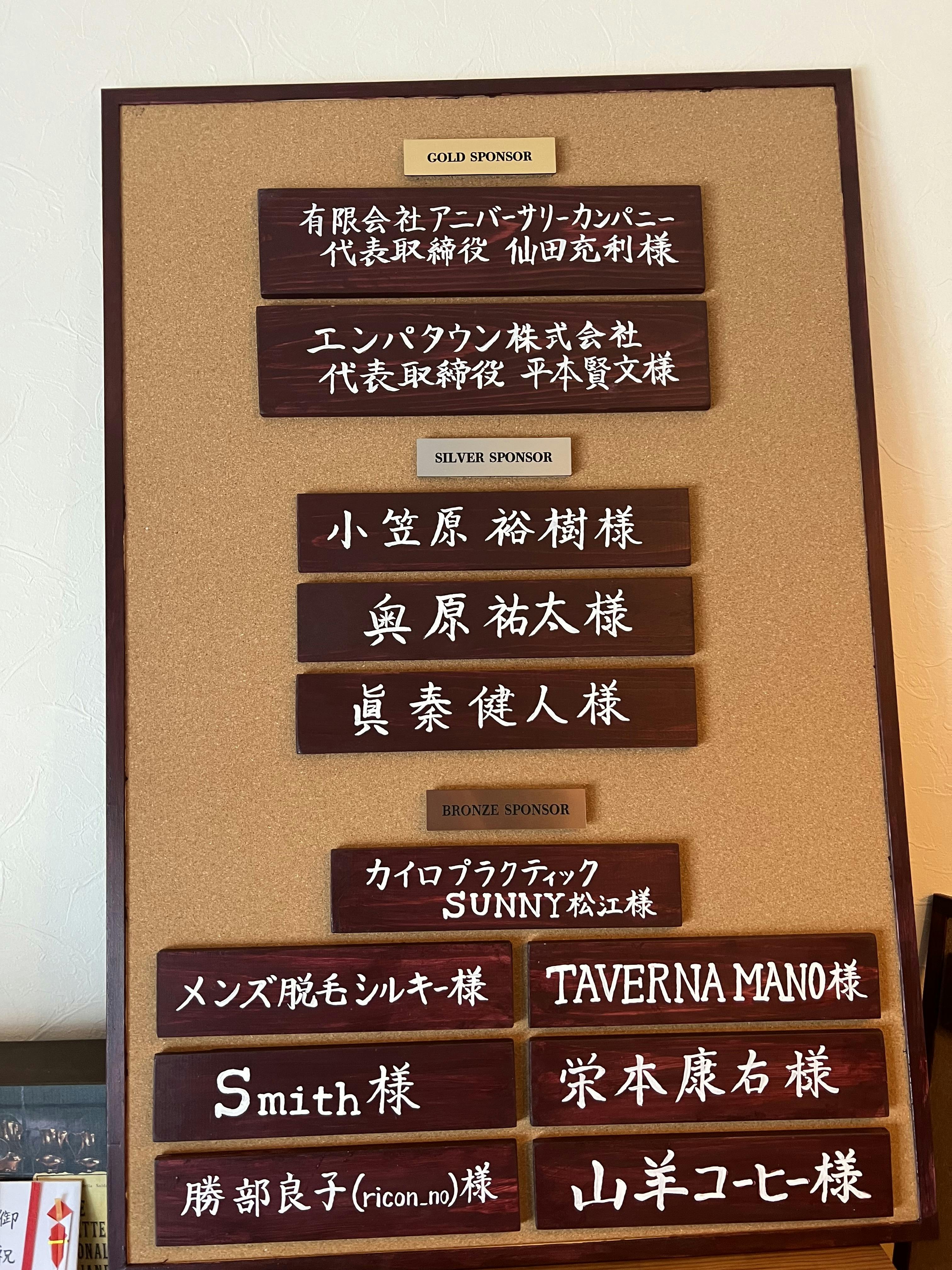 の皆さまのお名前を、店内に記名板として掲示いたしました。