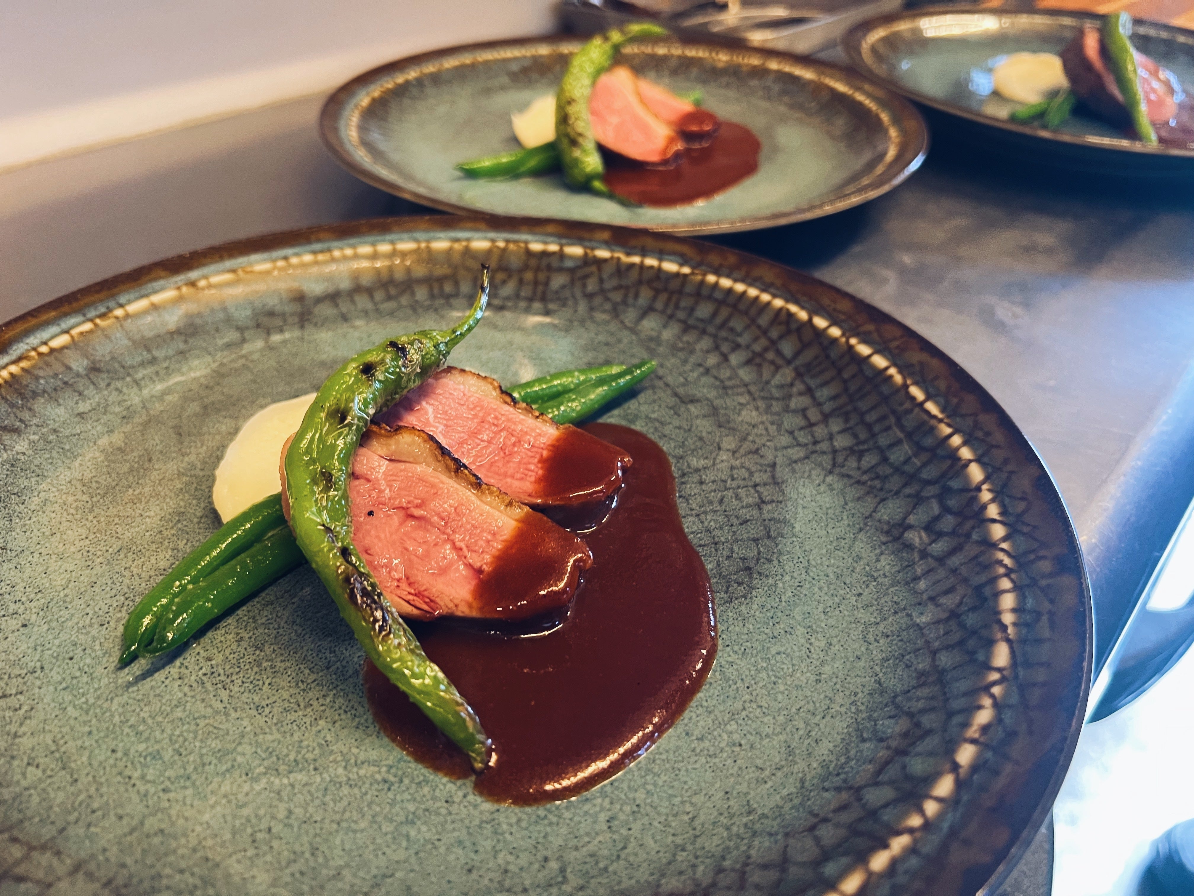 今日は米子市の「Restaurant BAR 関」さんで、ランチタイムにお手伝いをさせていただきました。関シェフの動きは本当に無駄がなく、一つひとつの所作が丁寧で、見ていて勉強になることばかりでした!奥様の接客も、お客様はもちろん、見ているこちらまで笑顔になってしまうような素敵なサービスで、本当に温かい時間を過ごさせていただきました。ありがとうございました♬トップ画像のメイン料理は鴨肉のロースト。少し味見をさせていただきましたが、しっかつ香り高いジューシーな絶妙な火入れでとても美味しかったです!!ランチの後は、関シェフご夫妻と一緒に米子コンベンションセンターで行われた業務試飲会へ。会場ではたくさんのインポーターさんが出展されており、イタリアワインはもちろん、食材や調味料なども試食しながら回らせていただきました(^_^)どのブースも個性豊かで、「お店で使ってみたい!」と思うような魅力的なものがたくさんありました。また、米子市の飲食店の皆さんとも交流ができ、とても刺激的で有意義な時間に(*´-`)こうしたご縁やつながりを、これからのお店づくりにも大切にしていきたいと思います。そして、関さんのお店に来られていたお客様の中に中学時代の同級生がいて、10年以上ぶりの嬉しい再会もありました(´∀`)思いがけない出会いにびっくり&ほっこりした一日でもありました。これからTAVERNA TAKIでも、今日出会ったワインや食材を皆さまにご紹介できたらと思っています(^_^)