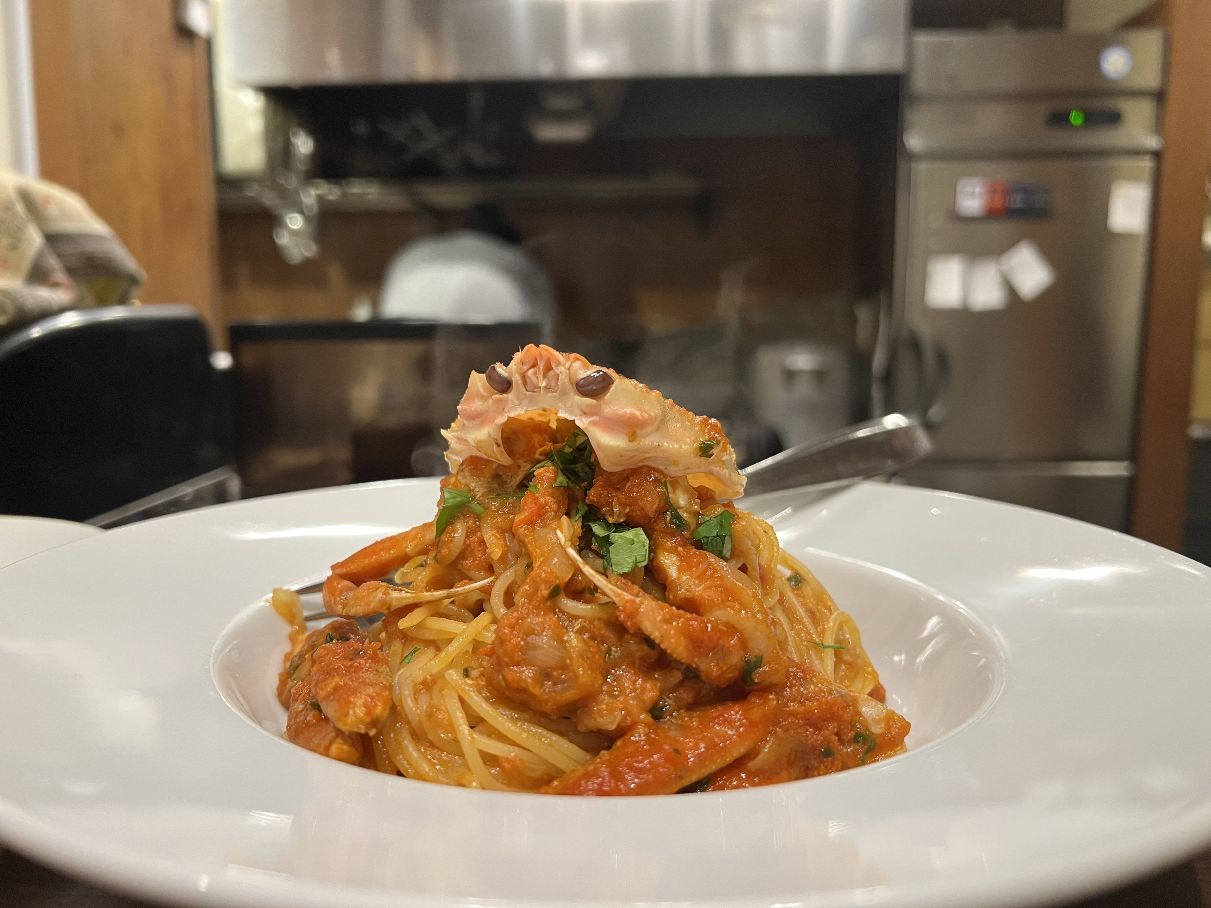 おはようございます!私事ですが11月7日で誕生日を迎え32歳になりました。誕生日を迎えた瞬間は、友人からの急な相談で、イベント用のパスタを打たせていただいていました。笑頼ってもらえるのはとても嬉しく、少しでも力になれればと思って作りましたが、生地の状態を見ながら乾燥の工程も取り入れてみたところ想像以上に良い仕上がりに。こんな感じに。イベントでは穴熊と鹿のトマトラグーと合わせるそうです。またひとつ学びのある時間となりました。お陰様でお店の工事も順調に進んでおり、オープンは12月17日を予定しています。ここまで来られたのは、関わってくださっているすべての方々のおかげです。本当にありがとうございます!誕生日の夜は、アルソーレさんに連れて行っていただき、親蟹(セコ蟹)のパスタやチーズリゾットをワインと一緒に楽しませていただきました。柿と奥出雲葡萄円さんのランブルスコがドンピシャでした。とても素敵な時間を過ごすことができ、心に残る誕生日となりました^_^そして、クラウドファンディングも残り10日。応援してくださる皆さまのおかげで、ここまで続けてこられています。本当に、いつもありがとうございます。引き続きお店の様子などページも更新しつつ、最後までしっかりやりきります♬