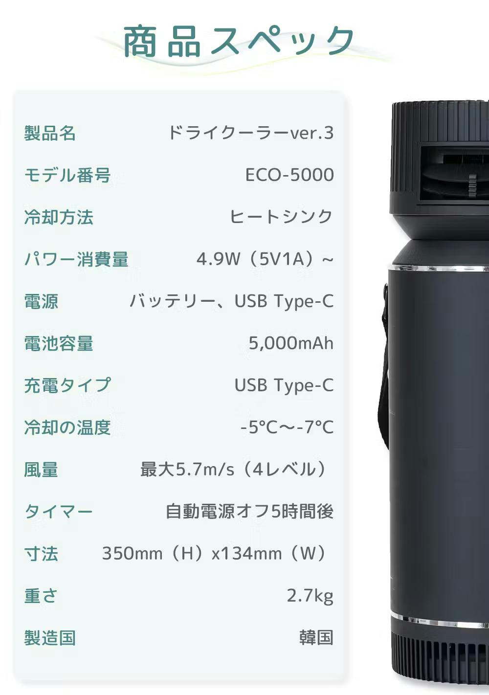 ドライクーラーは改良を重ねてVer3となりました。騒音、風、ポータブル性、デザインまでもが改良された新モデルです。