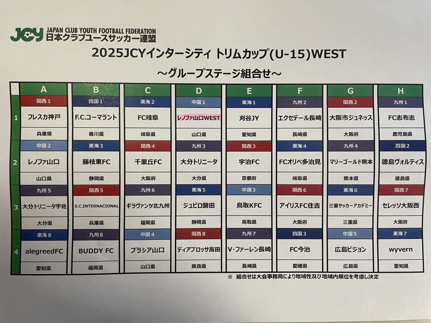 〇U-15中国プログレスリーグ 1部(10チーム)に所属しているため山口県予選は免除