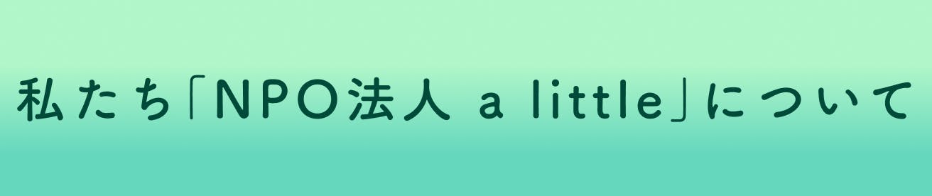 私たち NPO法人a little は「誰もが人生のどのステージに立っても自分らしくいられる社会を創ろう」というビジョンを掲げて兵庫県西宮市を拠点に活動しています。