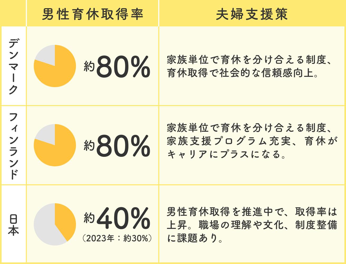北欧諸国と日本の男性育休取得率と夫婦支援策