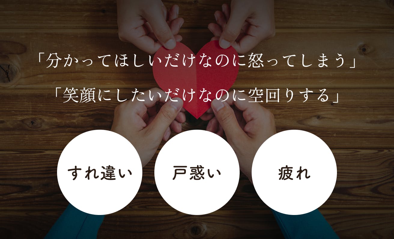 すれ違い、戸惑い、疲れがイライラに変わってしまうことは子育て以外にもよくあることです。